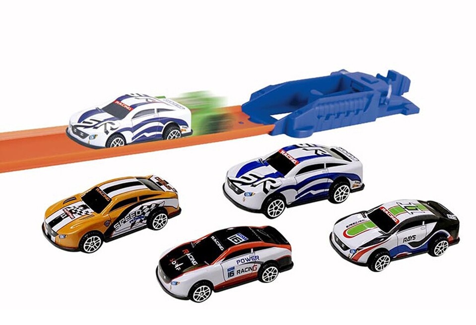Sada obsahuje 4 kovové autá. Dráhu zostavte podľa obrázku na zadnej strane obalu.
