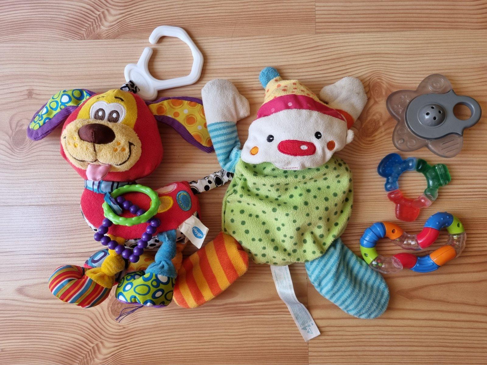 Darujeme tri hračky pre bábätko (psík, šaško, hrkálka) a dve plastové hryzátka. Psík má kadejaké šušťavé časti a šaško má v sebe hrkálku. U nás boli použité niekoľkokrát. Dobrý použitý stav. Vyzdvihnutie v LM podľa dohody, najlepšie okolo centra.