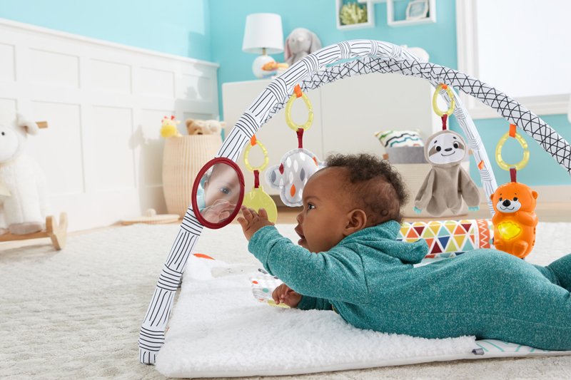 Vychutnajte si všetkých päť zmyslov vášho dieťaťa pomocou dokonale zapadajúcej telocvične Perfect Sense Deluxe Gym od spoločnosti Fisher-Price.Jeho super útulná hracia podložka s podporným klinom v brušnom čase je ideálnym miestom pre vášho malého prieskumníka, ktorý sa pustí do zmyslového dobrodružstva. Od svetiel a hudby priateľskej vydry po žuvačku so žuvacími listami, plyšové leňošky, vôňu mrakov a ďalšie, je tu pre vaše dieťa toľko, čo môže objaviť v tejto luxusnej telocvični pre kojencov. K dispozícii je dokonca aj výklopný medzníkový panel pre tieto mesačné fotopasy!Kde prichádza vývoj do hry ™Senzorické: Pamiatky, zvuky, textúry a ďalšie - táto detská telocvičňa je vybavená zmyslovou stimuláciou, ktorú môže vaše dieťa objaviť!Hrubý motor: Hlúpe zvieracie kamaráti nad hlavou povzbudzujú vaše dieťa k dosiahnutiu a pálke počas laického a hracieho času, čím sa posilňujú ich hrubé motorické schopnosti.Fine Motor: Uchopenie hračiek a privedenie zubáka k ústam pre lepšiu zábavu pomáha posilňovať koordináciu a obratnosť vášho dieťaťa.