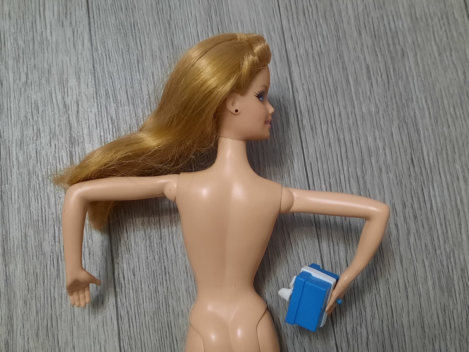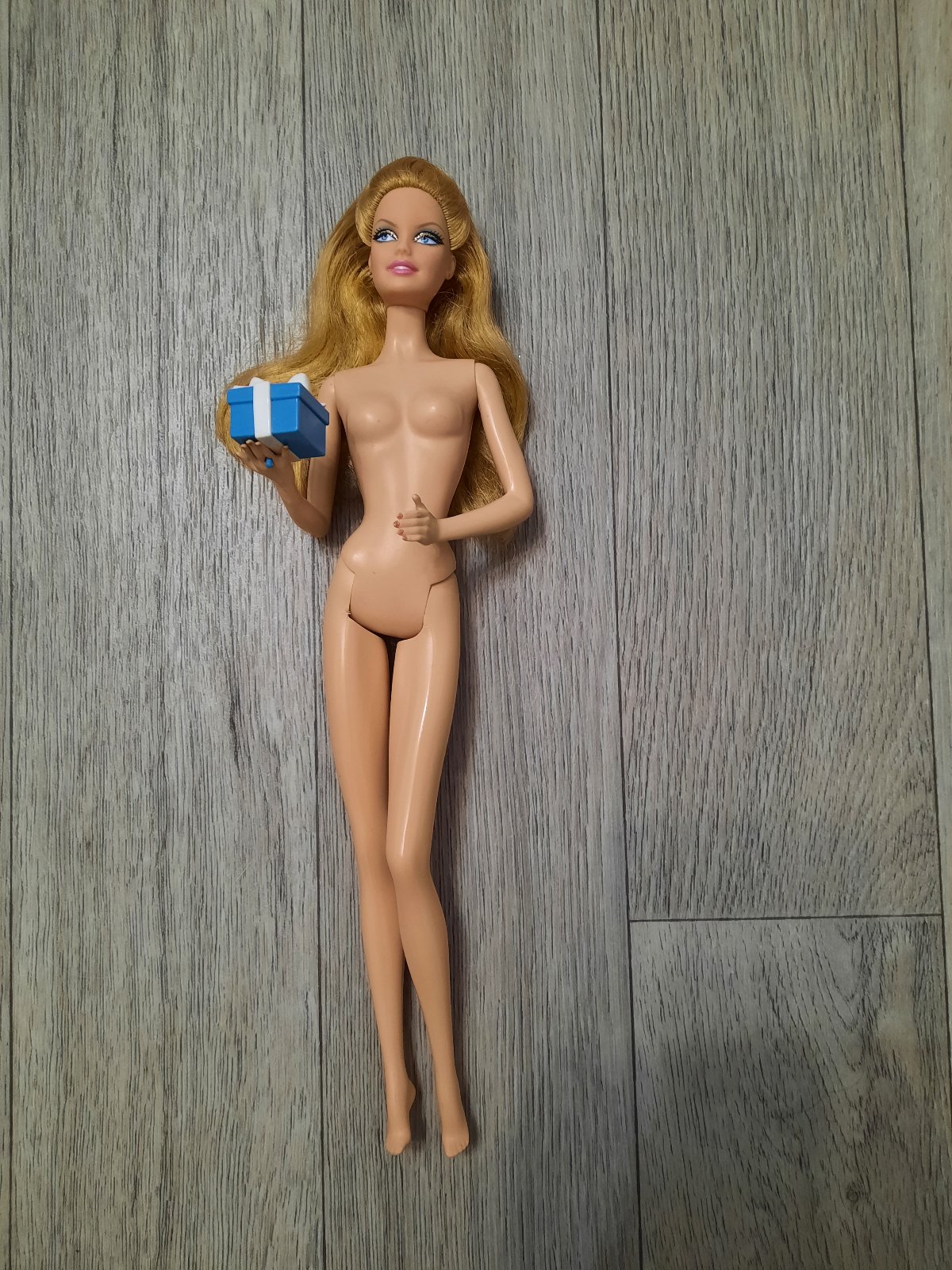Barbie model muse s darčekom (nedá sa jej vybrať z ruky, má ho pripevnený).