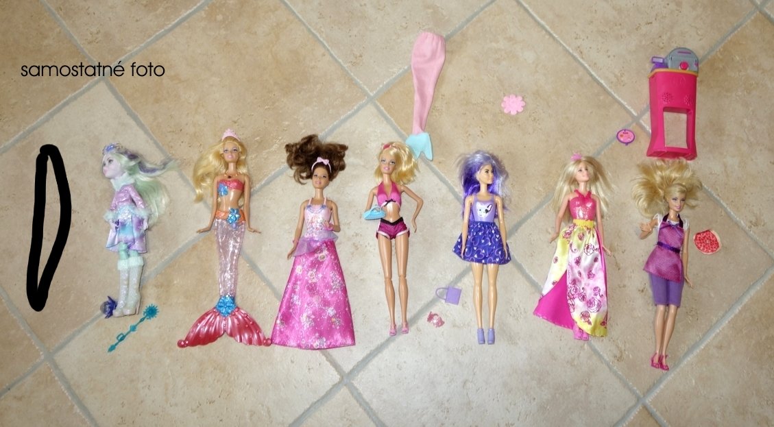 Na foto sú všetky Barbie od Mattelu originál. Jediná, ktorá je Originál Mattel, ale nie Barbie, je tá ľadová. Barbie sa predávajú s oblečením, ktoré majú na sebe, vrátane doplnkov.