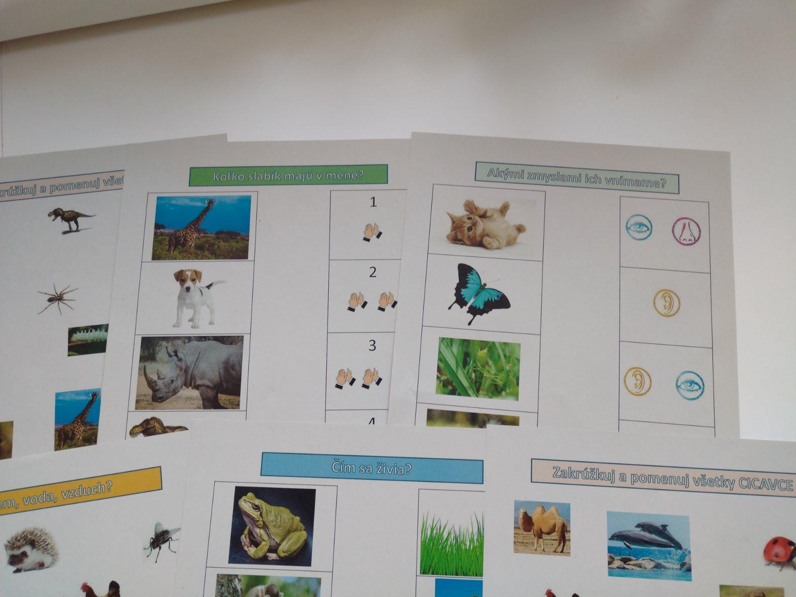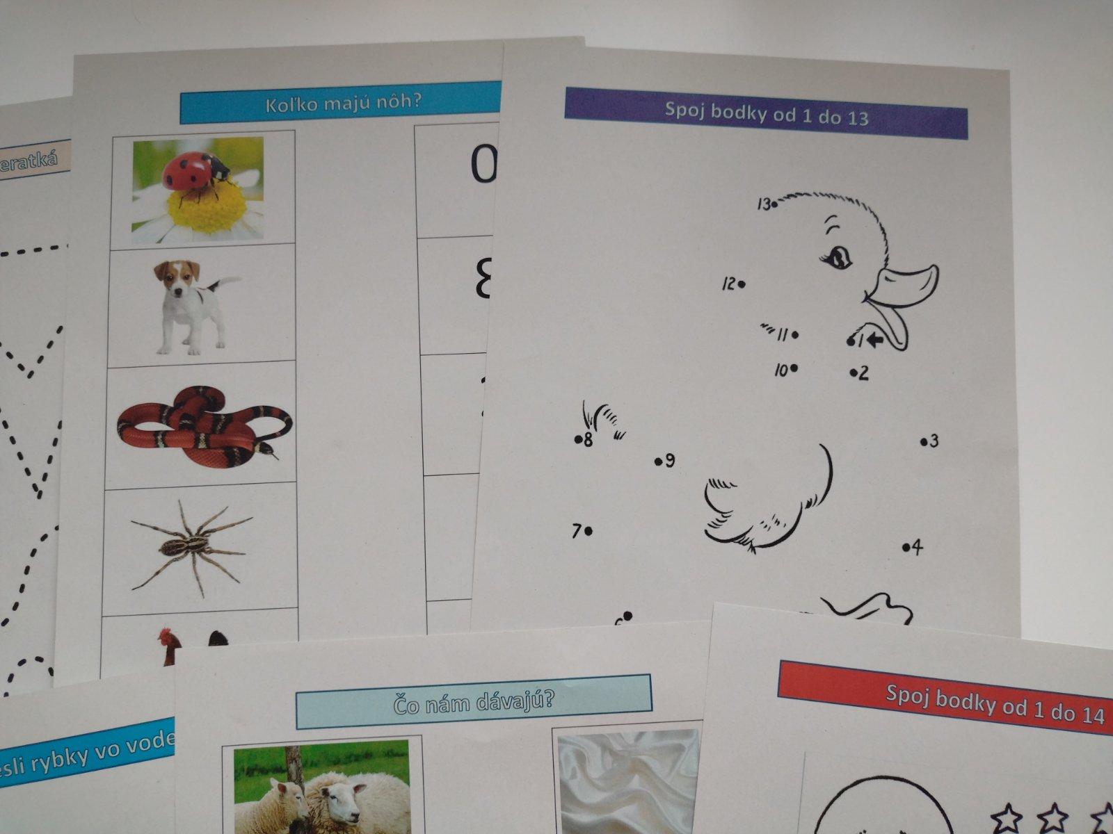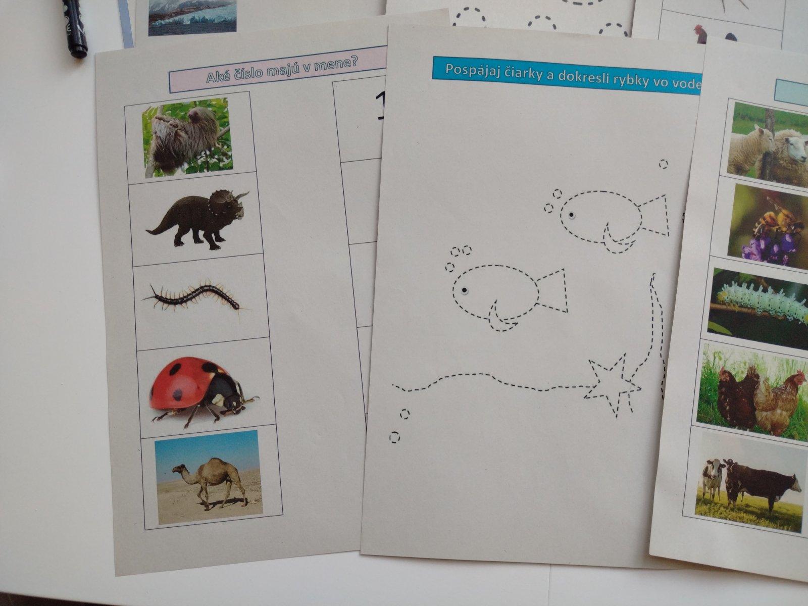 8 x A4 veľkosť obojstranných rôznych aktivít, čiže 16 rôznych aktivít, úloh na tému zvieratá v stierateľnom obale, nieje nutné nič laminovať, obal je možné použiť opakovane aj s inými úlohami.