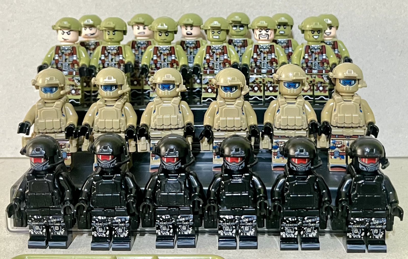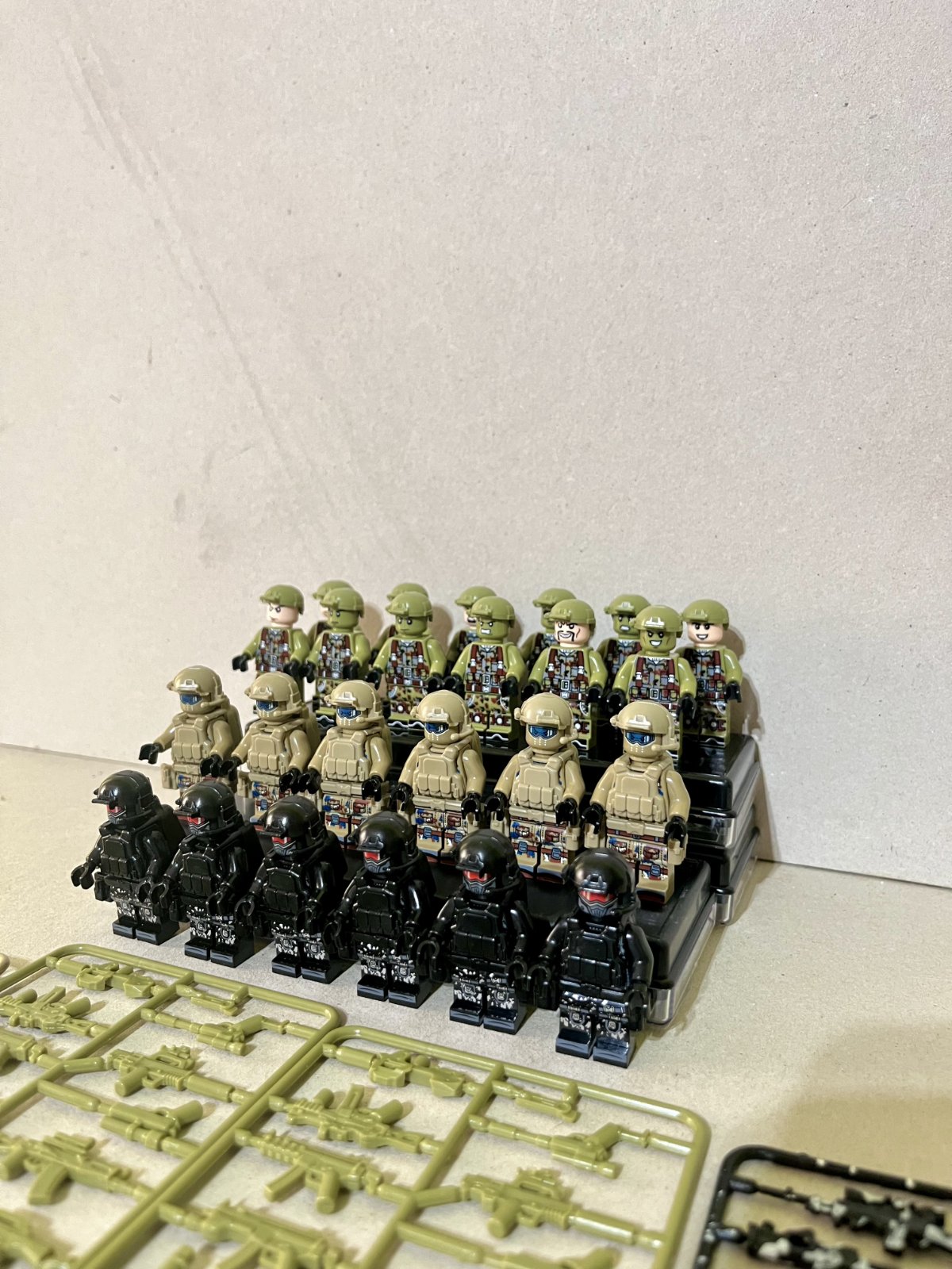 Predám obľúbené figúrky (postavičky, panáčikovia) policajtov - špeciálnu jednotku S.W.A.T typ lego. Jedná sa o sadu 16 figúrok na obrázku vrátane všetkého príslušenstva, ktoré vidíte a uvedená cena je za celú sadu. Sú nové a zabalené a sú kompatibilné s legom. Veľkosť figúrok je štandardná, teda 45 - 55 mm. Každá figúrka má svoj vlastný špecifický doplnok