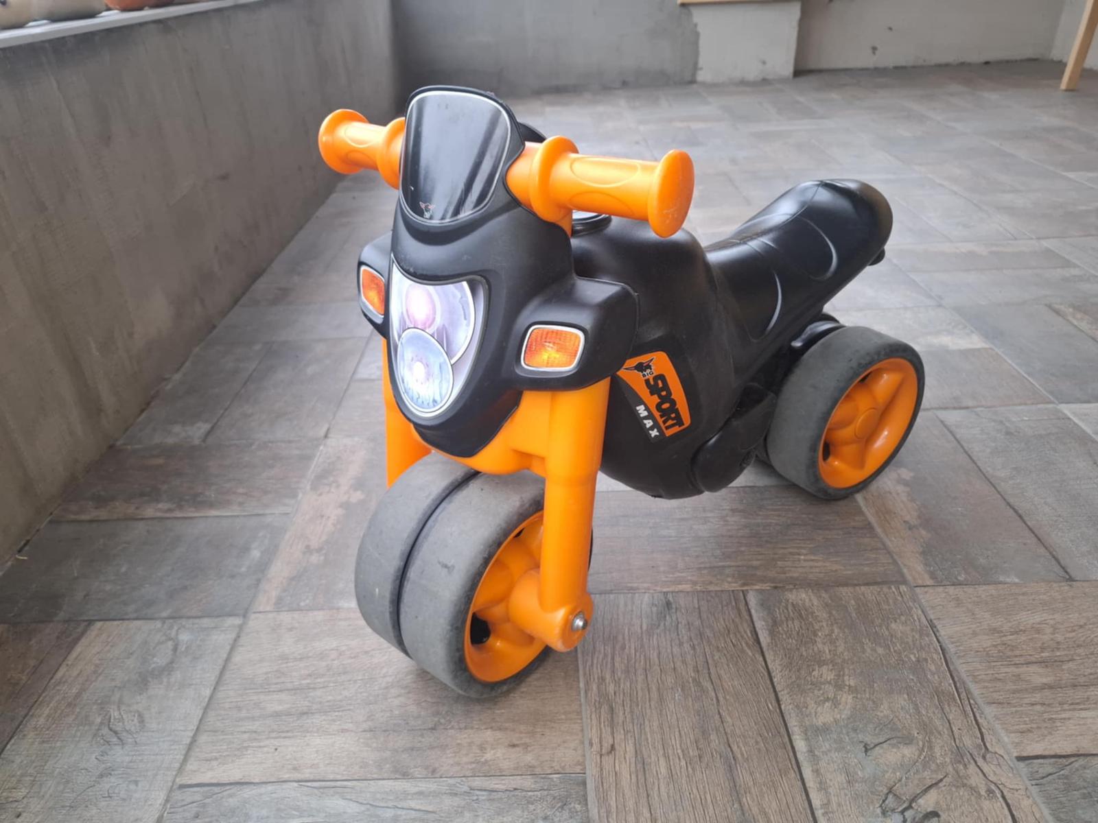 Robustné odrážadlo v tvare motorky, poteší každého malého pretekára. Odrážadlo má zvuky štartovania, zrýchlenia a klaksón. Široké kolesá sú pre lepšiu stabilitu a väčšiu rýchlosť.