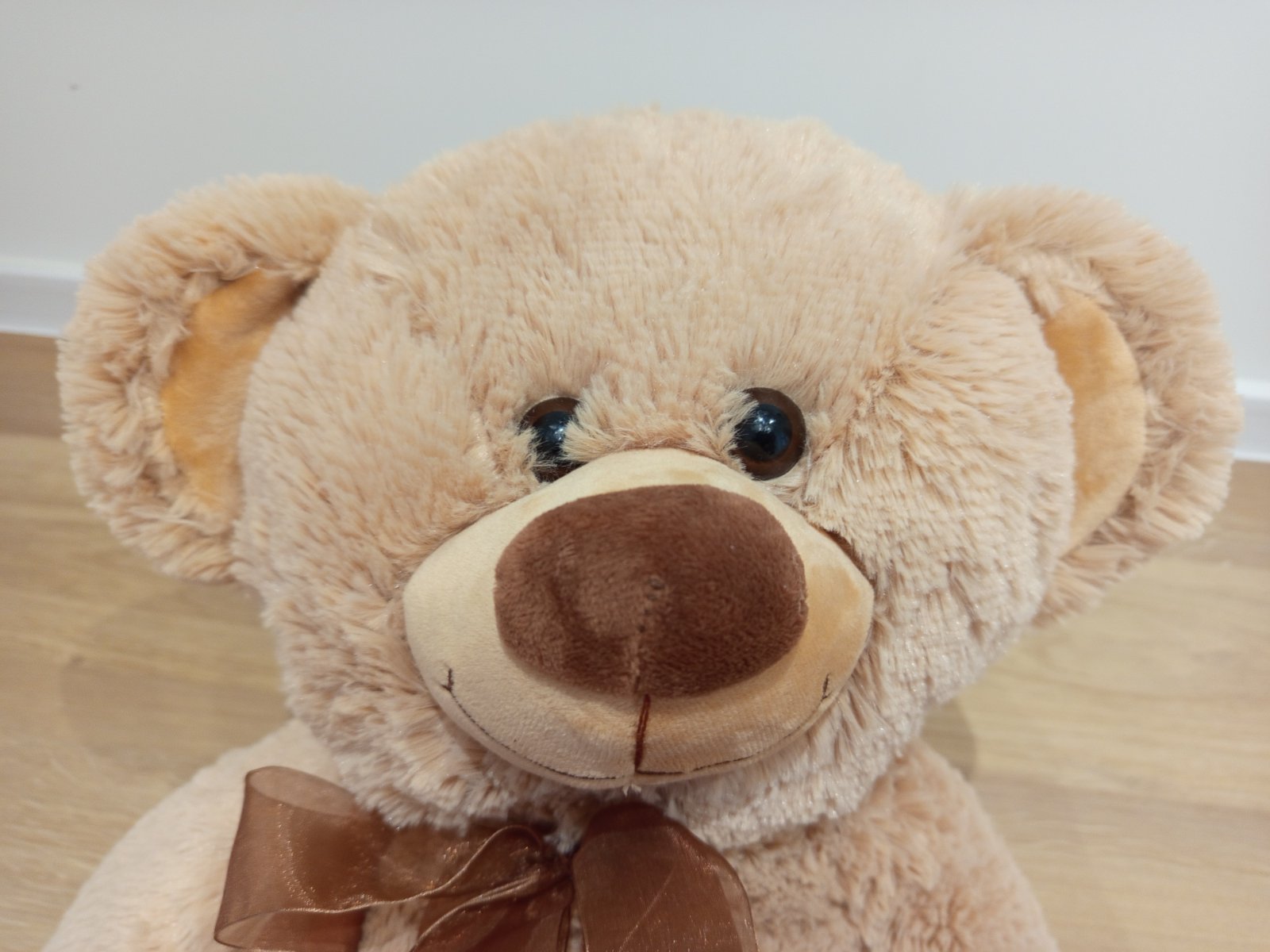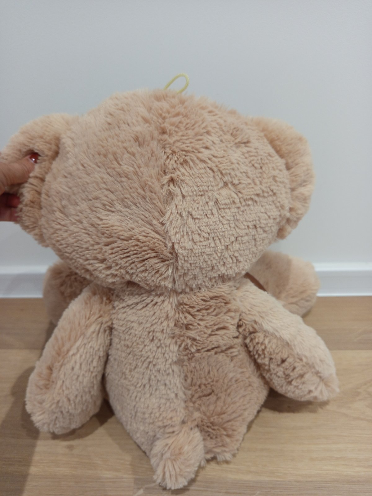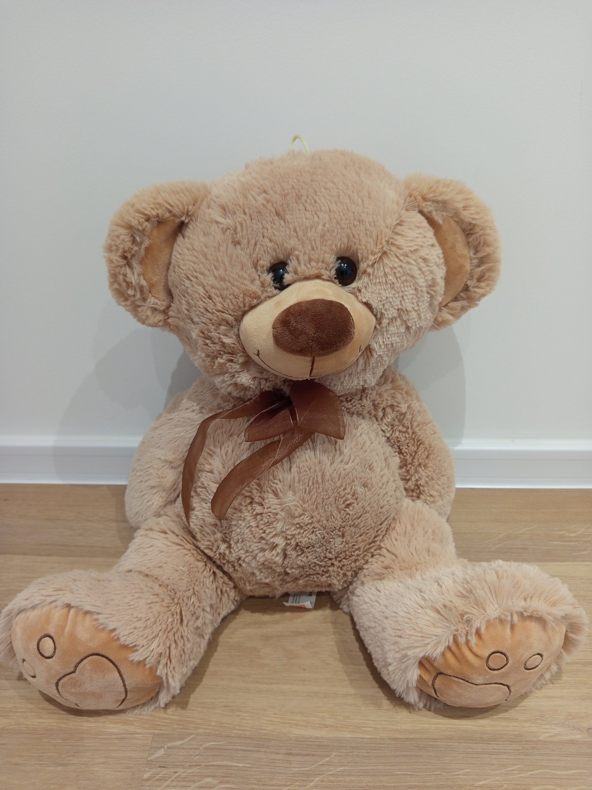 Vyska 55cm, kupovany v Draciku https://www.dracik.sk/plysovy-medved-47690/. Par mesiacov len stal na policke, ako novy.