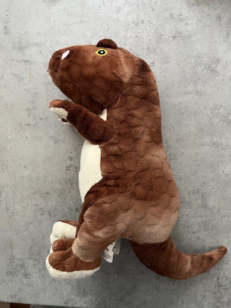 Plyšová hračka Dinosaurus v hnedej farbe, je vysoká 25 cm, vhodná pre deti od 3 rokov