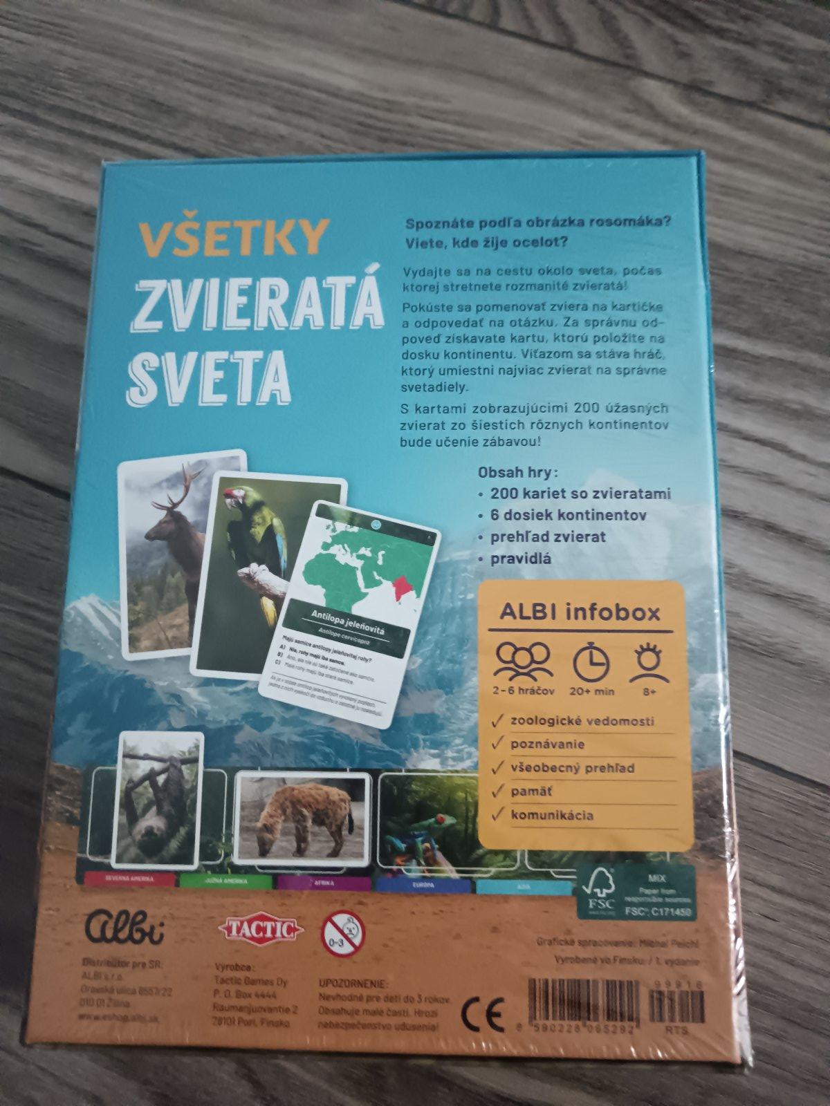 Pokúste sa pomenovať zviera na kartičke a odpovedať na otázku. Za správnu odpoveď získavate kartu, ktorú položíte na dosku kontinentu. Víťazom sa stáva hráč, ktorý umiestni najviac zvierat na správne svetadiely.