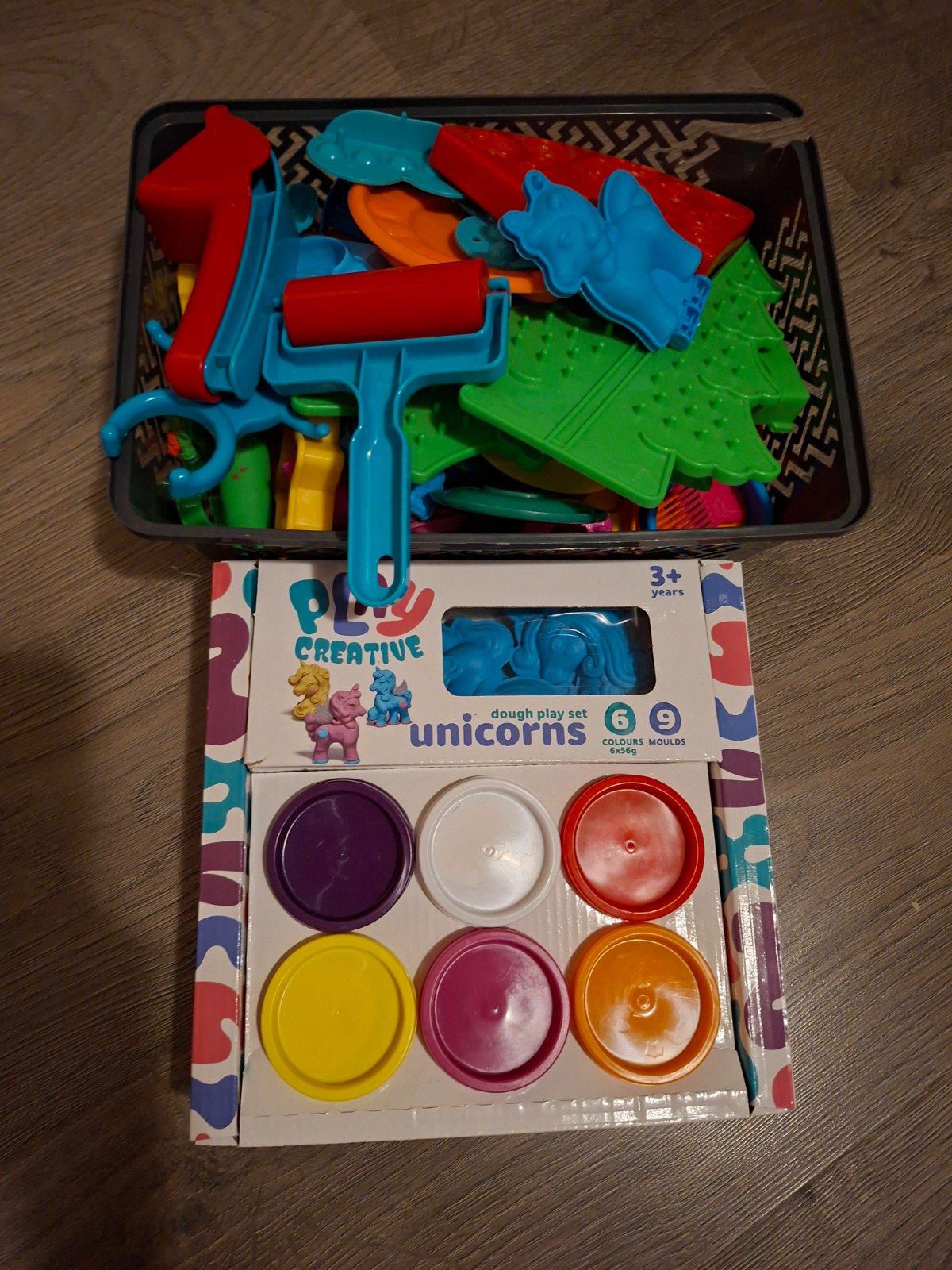 Nová plastelína, nehraná. Formičky na plastelínu. Hrané.