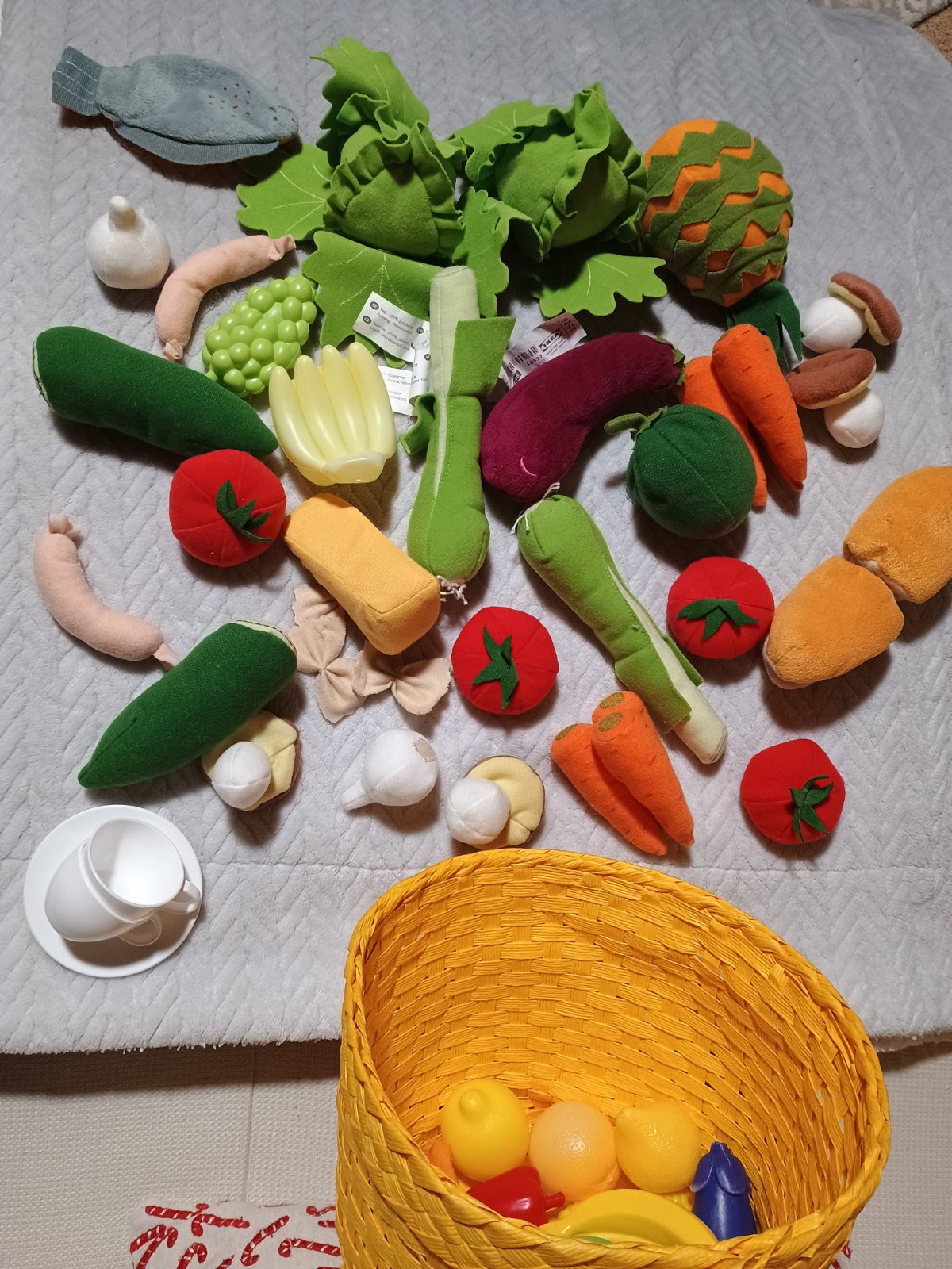 Plyšová zelenina Ikea - mix. Plus plastové ovocie. Cca 40ks. Bez poškodenia.