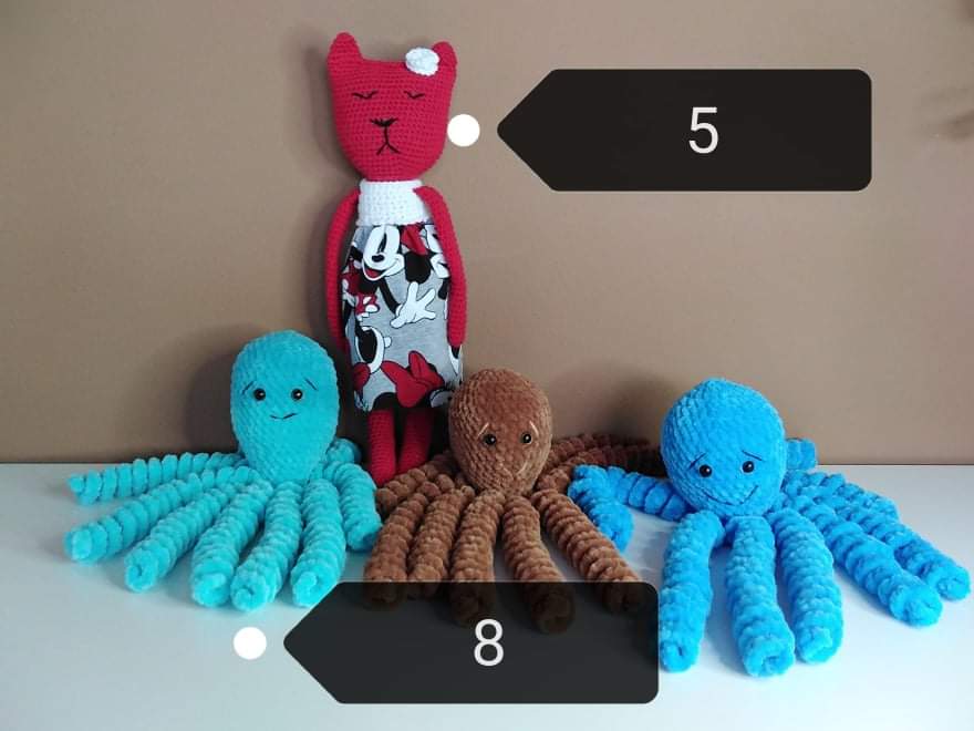 cena 20, chobotnicky 8, deka s ponchinom 25,medvedik 15
