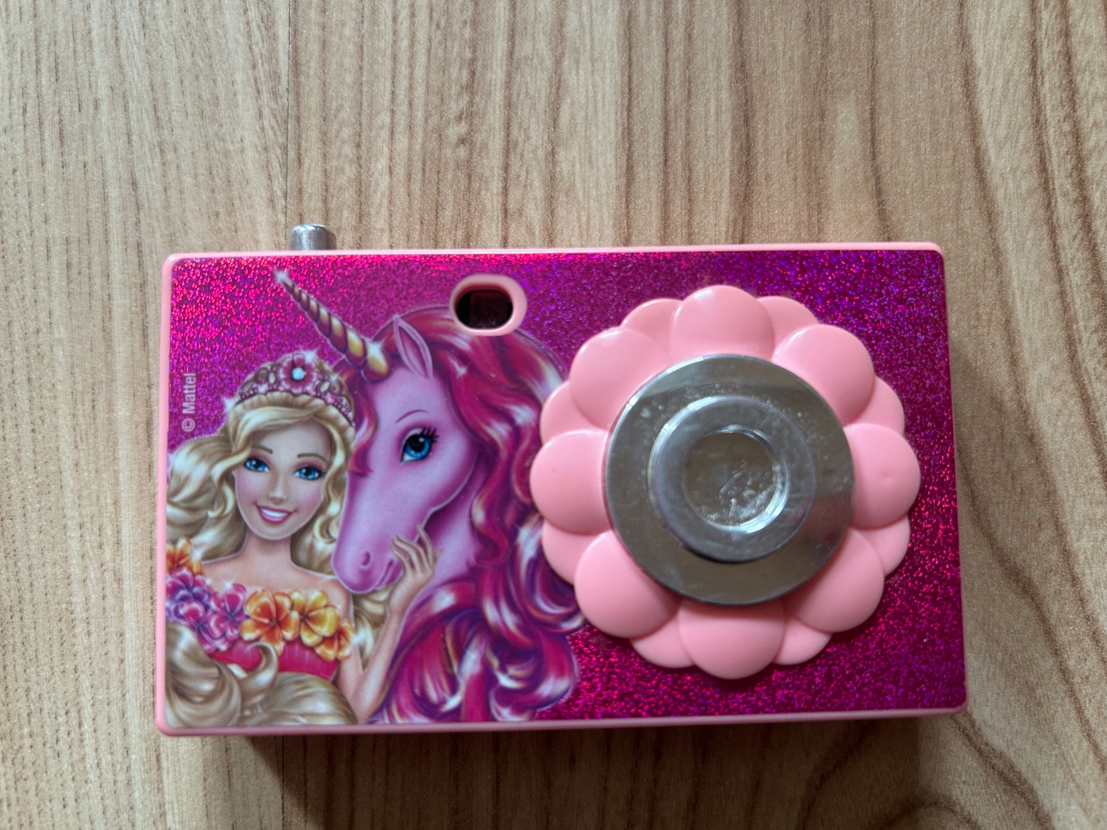 Hračkársky fotoaparát Barbie, ktorý pôvodne menil obrázky, ale je pokazené tlačítko