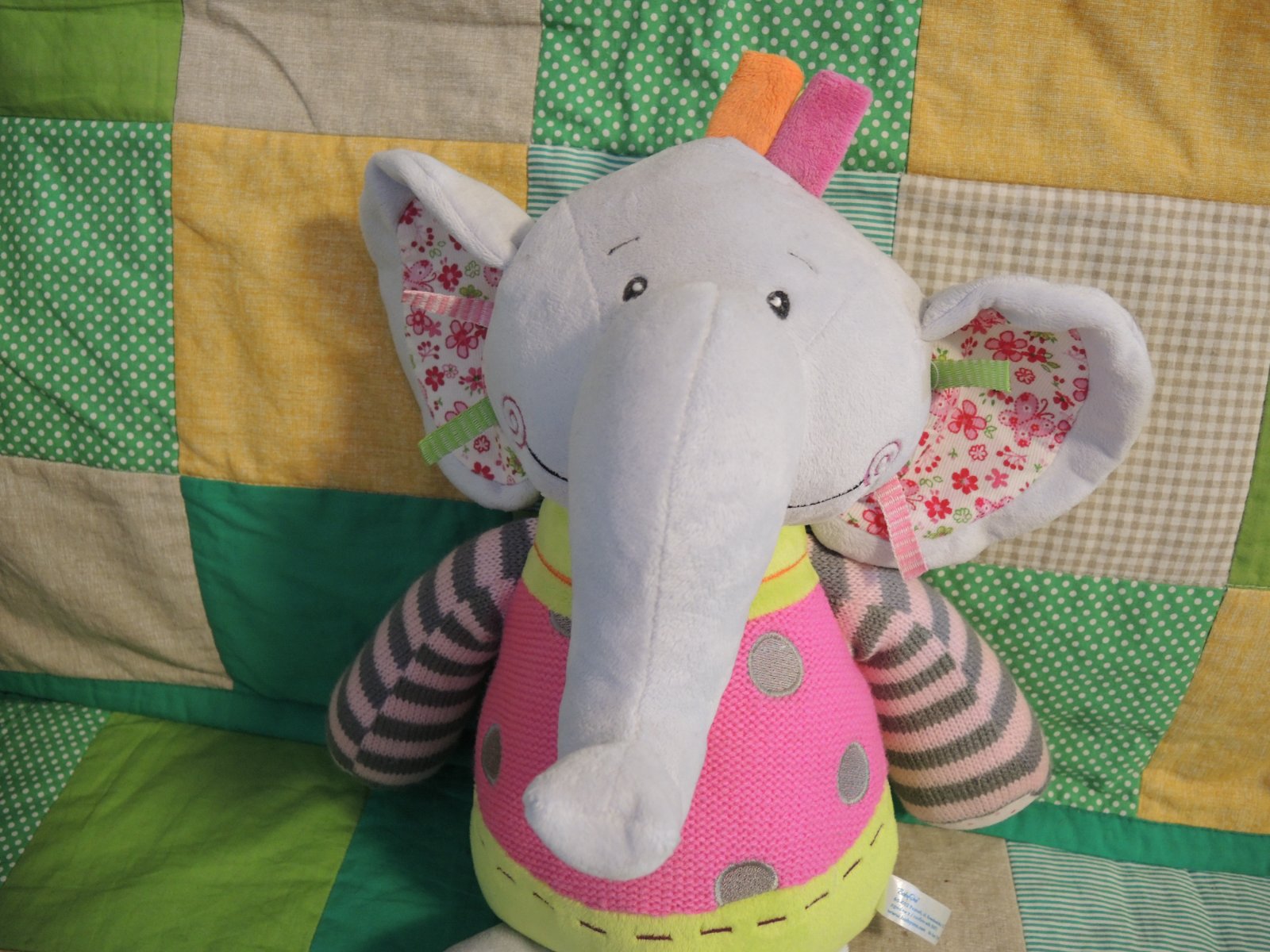 Predám krásneho väčšieho plyšového sloníka výrobcu Baby Ono. .... Bol iba raz opratý a vystavený na poličke. Dcérka sa s ním nehrala. Nemala rada sloníky. Je v top stave. Výška 55 cm, šírka 36 cm. Dá sa posadiť a hýbe aj rukami. Ideálny na dekoráciu detskej izbičky, či ako darček pre milovníkov sloníkov. Vhodný aj ako darček. V skutočnosti je ešte krajší ako na foto. Má nádherné žiarivé farby. Prekrásny.