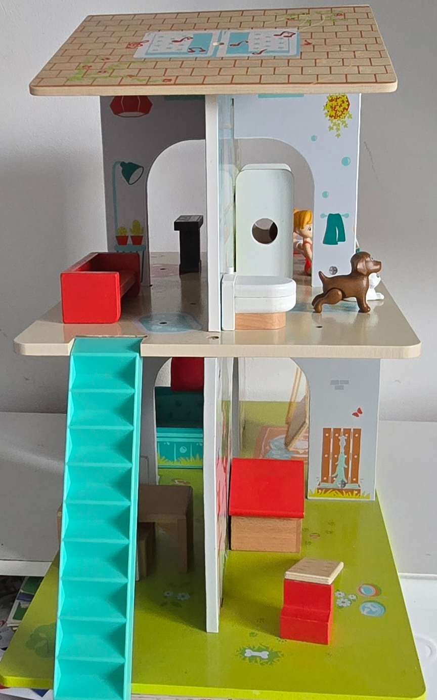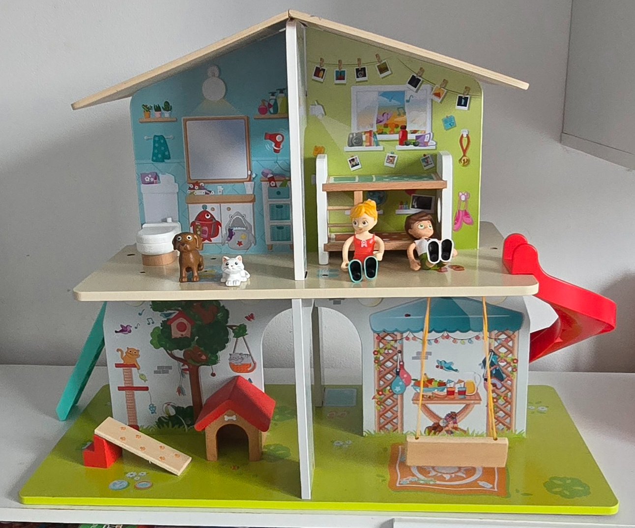 Ponúkam domček.Su k nemu dve postavičky,mačka a pes.Vydava zvuky.Plus nábytok