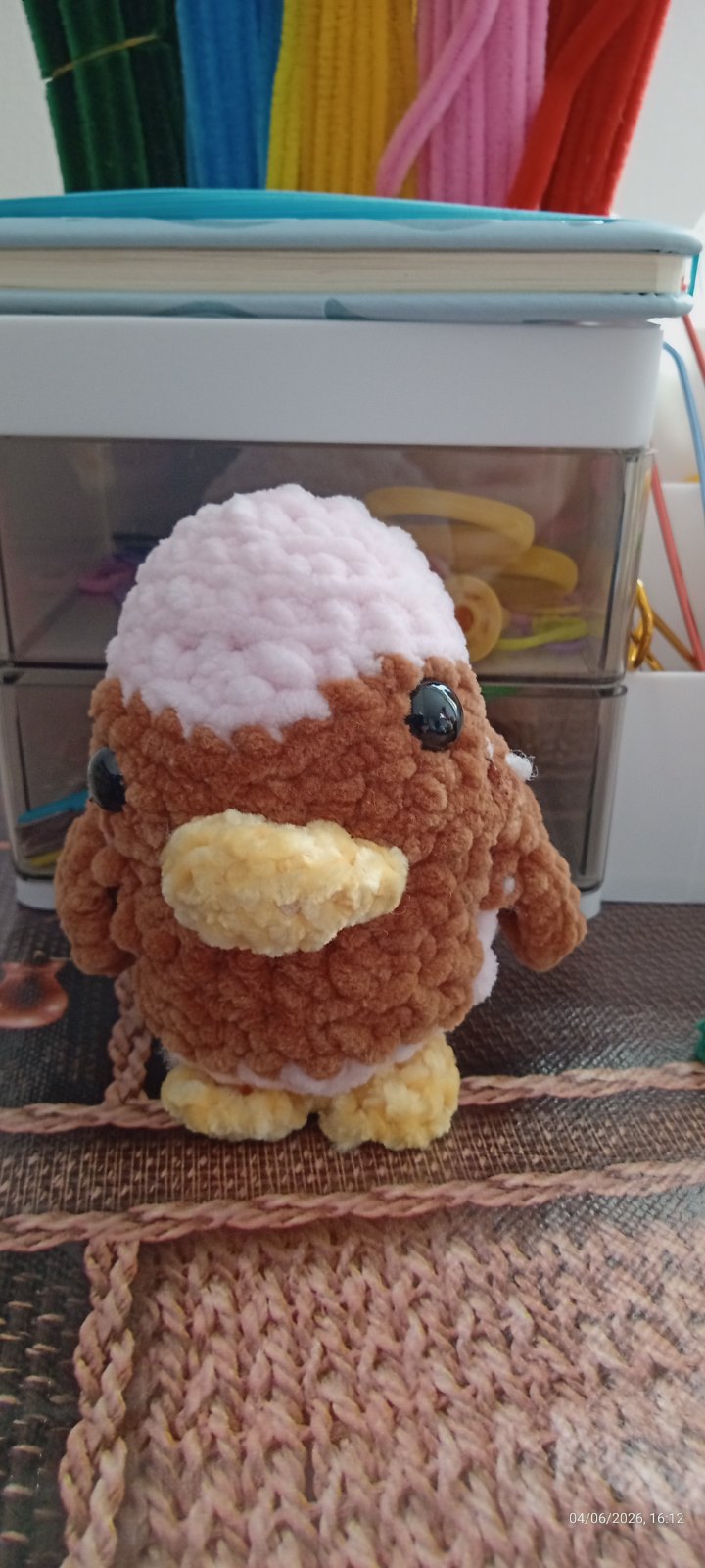 Táto sova má hnedé brucho aj krídla a ružový chrbatik so žltým nováčikom . Výšku má 10 CM a do šírky má 8,4 CM. A do dĺžky má 5,8 CM. Ďakujem vopred za objednávku. Je iba jeden kus. Vhodné pre deti od 2 rokov. Nie je používaný ale vlasti ručne urobený. Pekný deň. S pozdravom hackujsk- Laura.