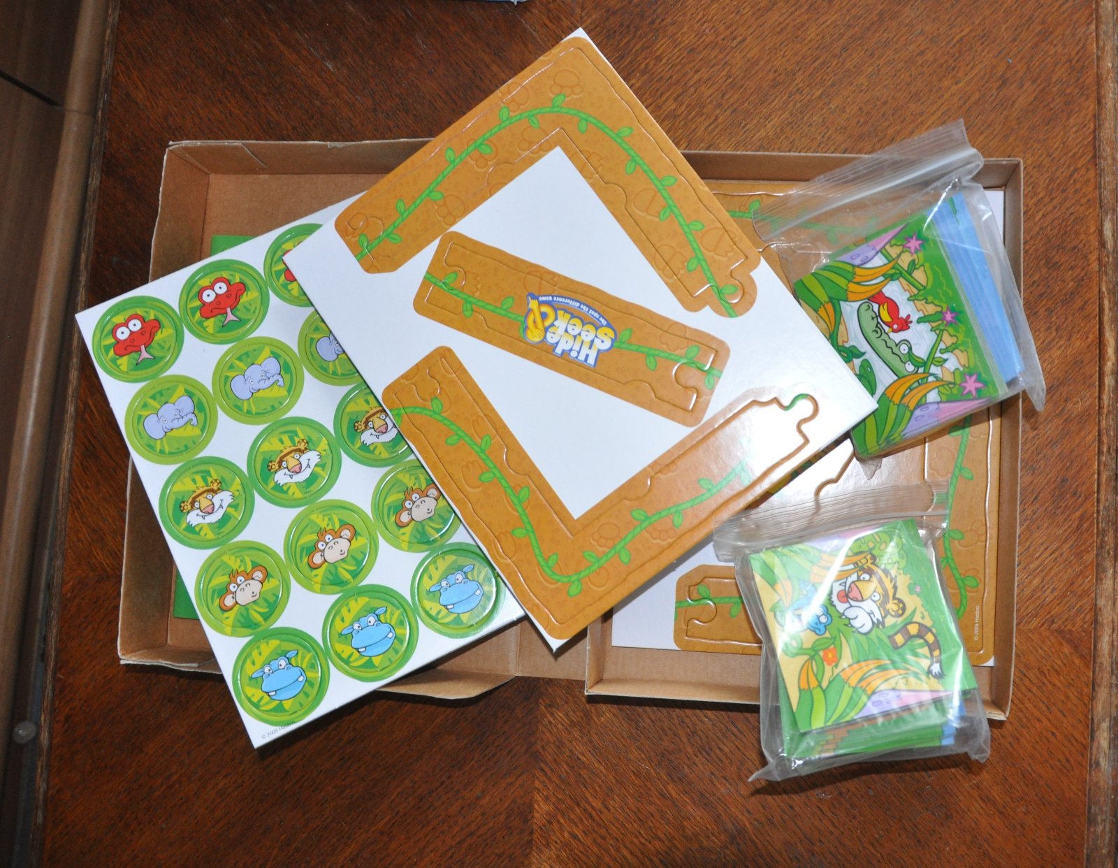 Hra obsahuje 24 obojstranných obrázkových kariet, 20 žetónov a rám.