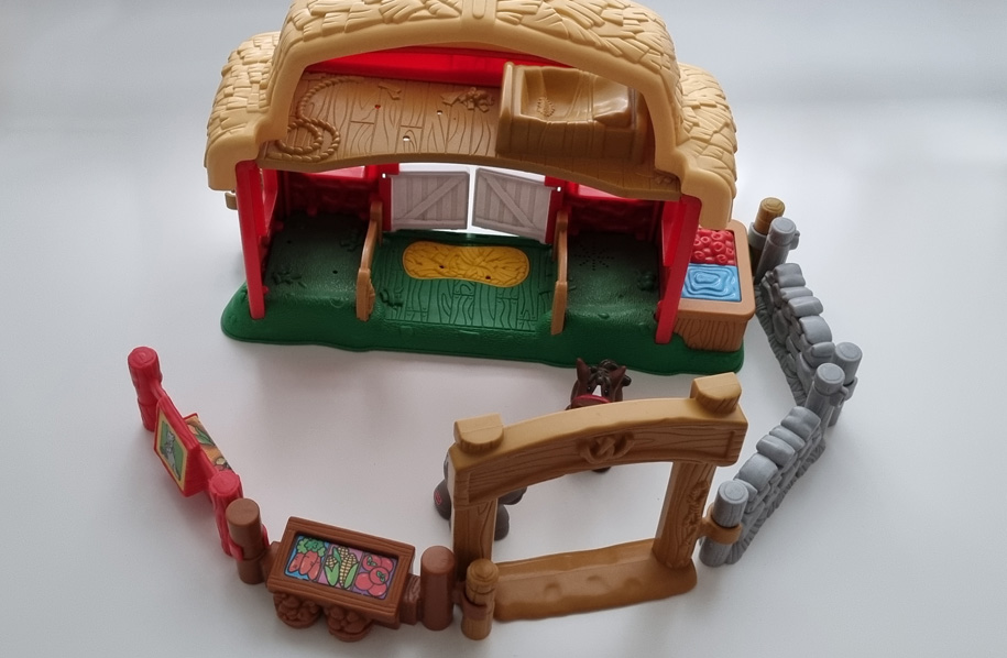 Predám farmu s otvárateľným domčekom s melódiou vo výbornom stave a pridám aj tri autá, materál: plast, vek: 24+ mesiacov.
