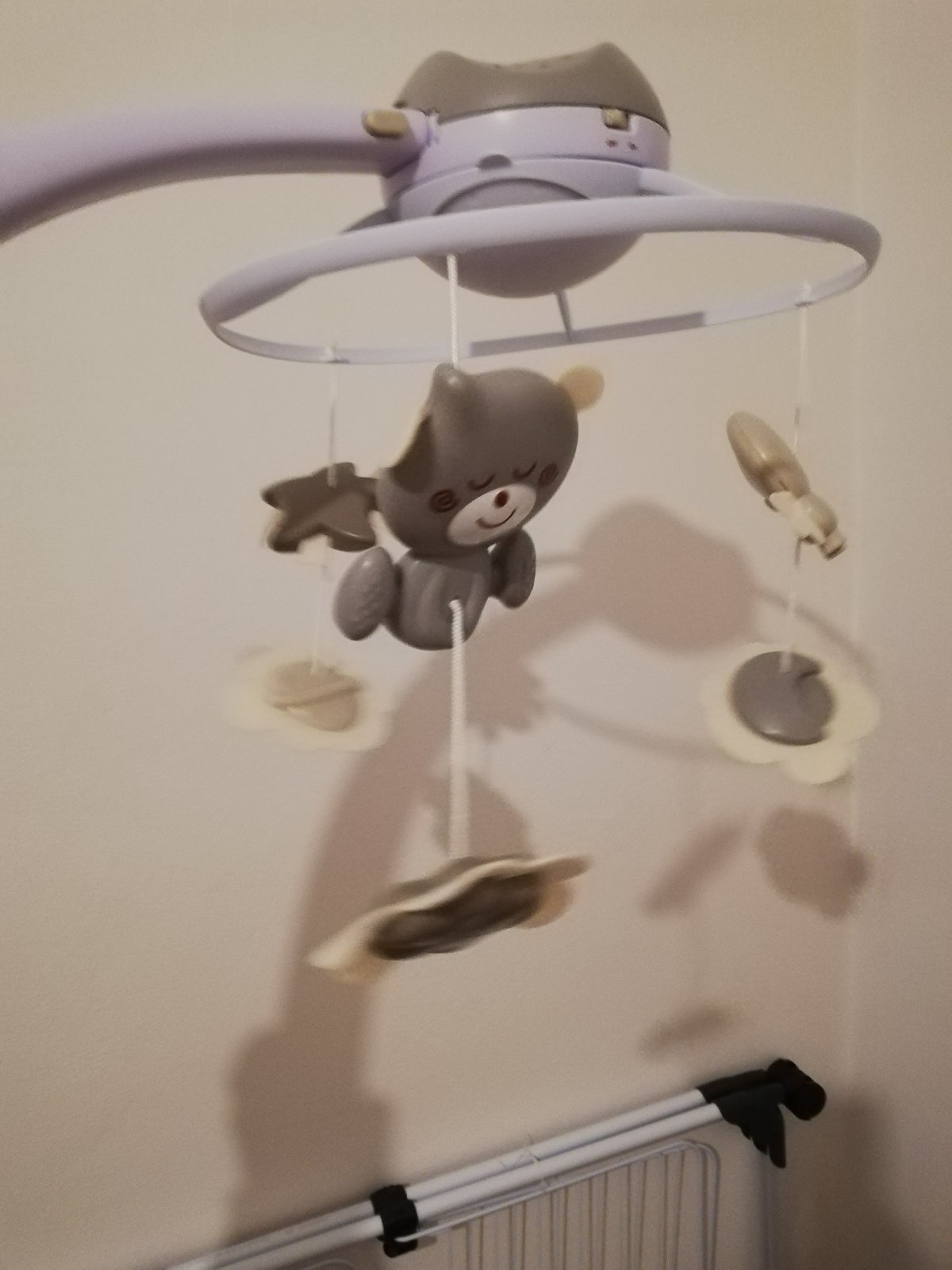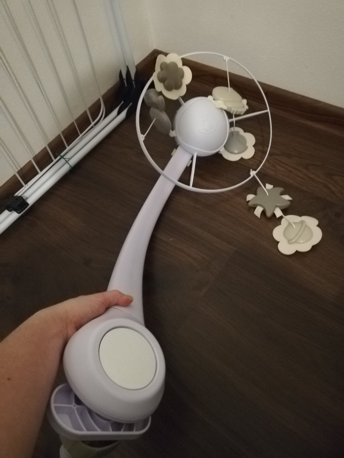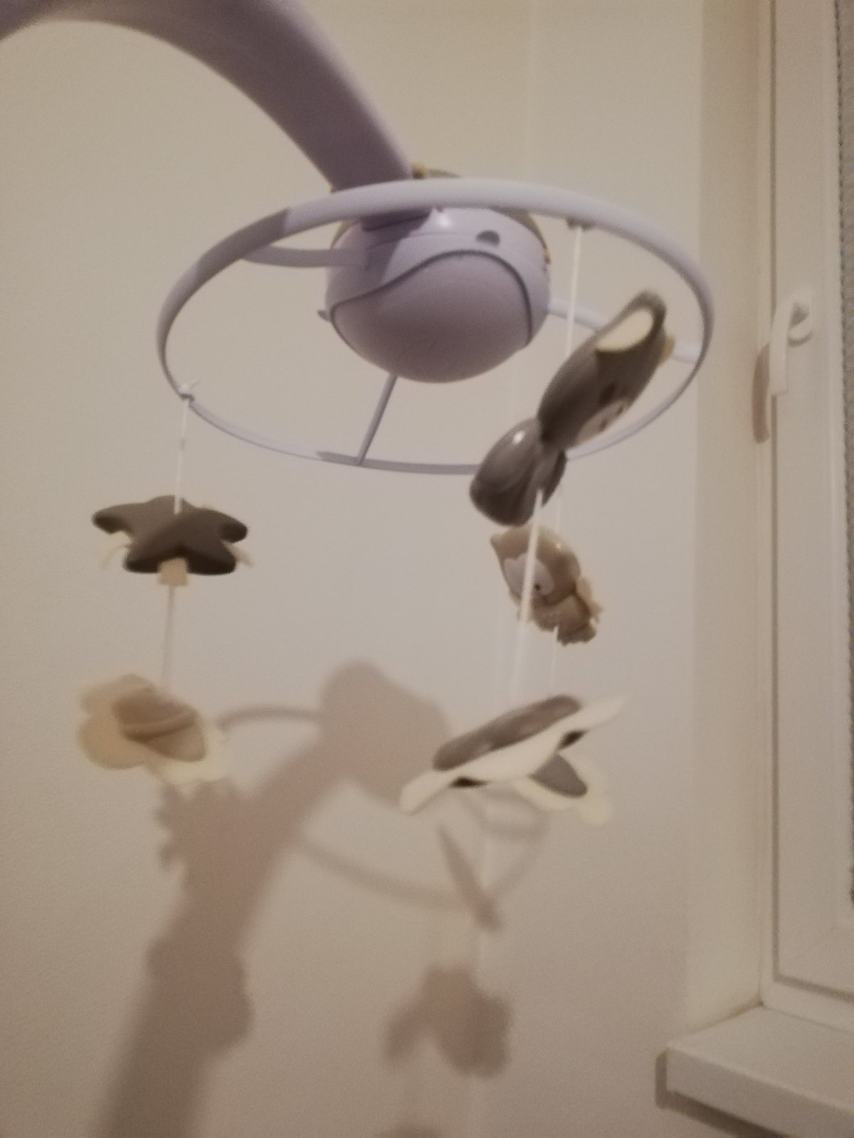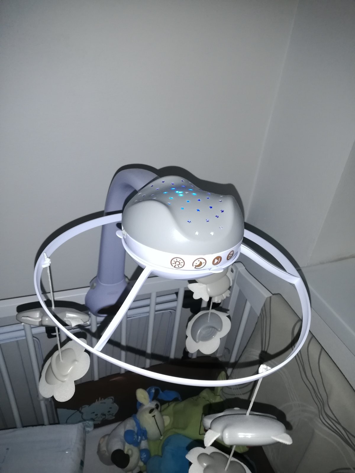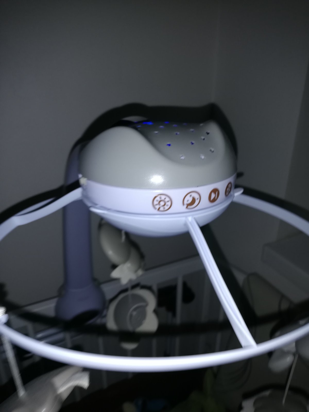 Kolotoč nad postieľku Infantino po jednom dieťati, plne funkčný. Farba svetlo hnedá, béžová, biela. Veľa funkcii(nastavenia hudby aj šumu , hlasitosť sa dá regulovať,, môže sa točiť, projektor hviezd a mesiaca na steny, vie byť neskôr ako nočné svetielko s projekciou k posteli,....)
