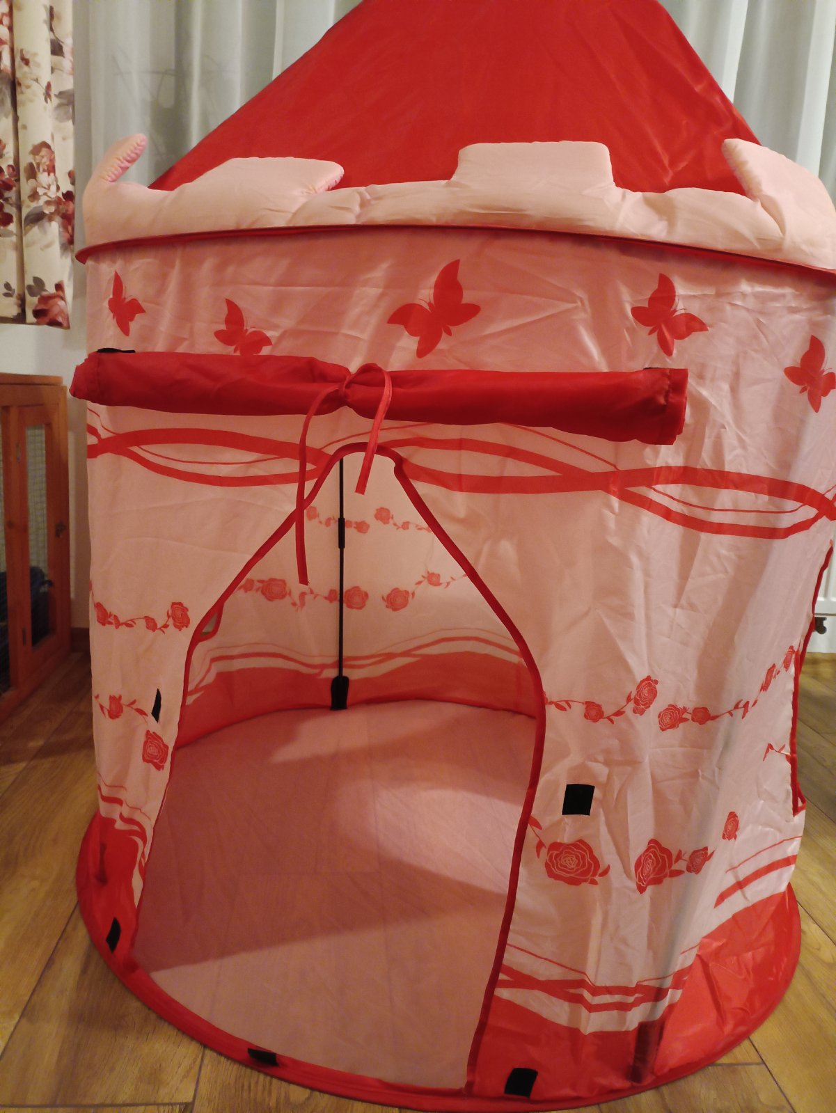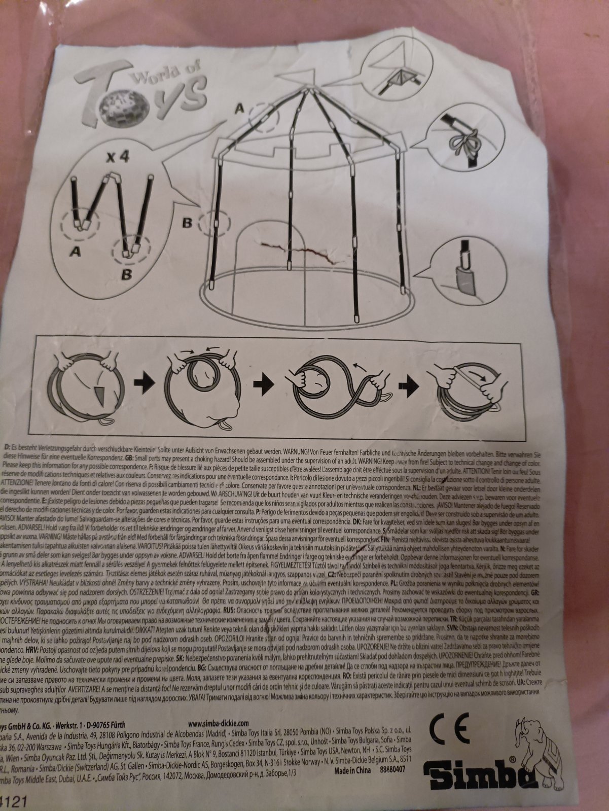 Stan v tvare hradu, v používanom stave. Dve tyčky majú prasknuté tie časti, do ktorých sa zasúvajú tyčky, je to oblepené páskou.