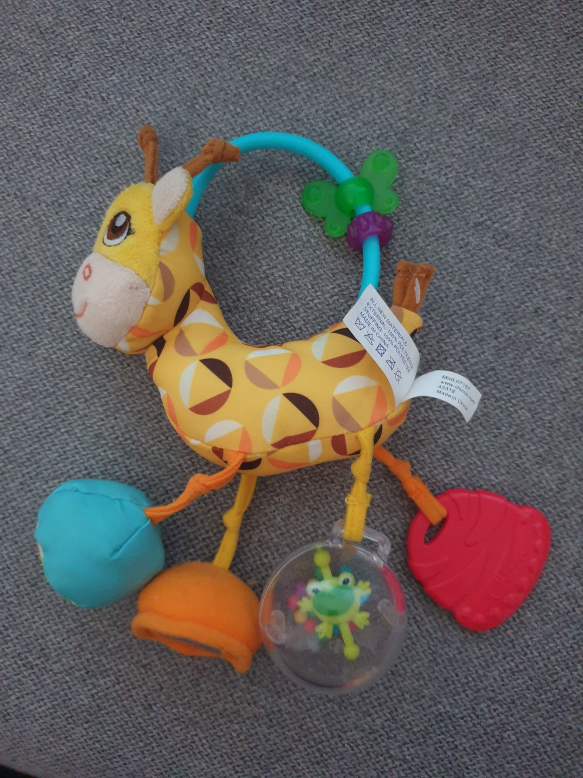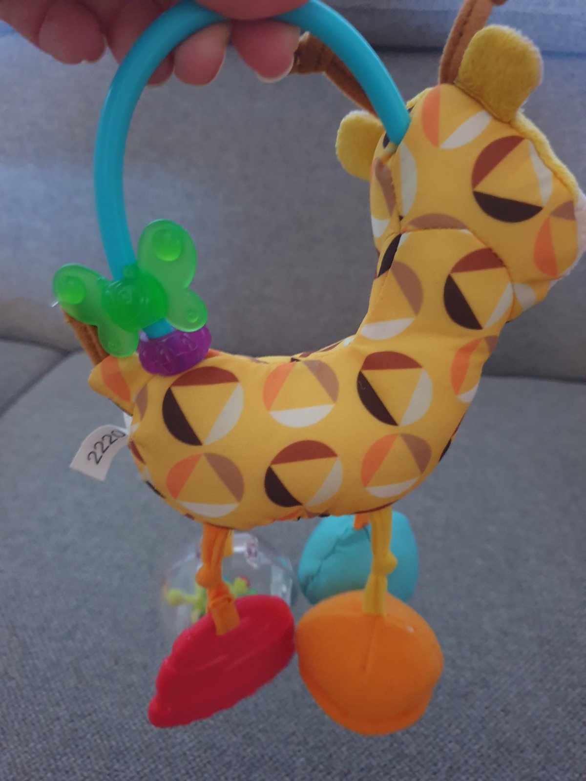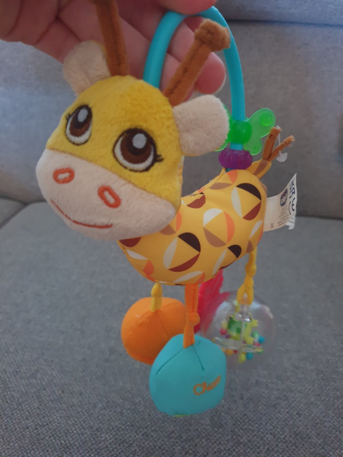 Krásna plyšová hrkálka v dizajne kamarátskej žirafy. Hračka podporuje správny rozvoj zmyslov dieťaťa. Je vyrobená z mäkkého materiálu a na dotyk je veľmi príjemná.