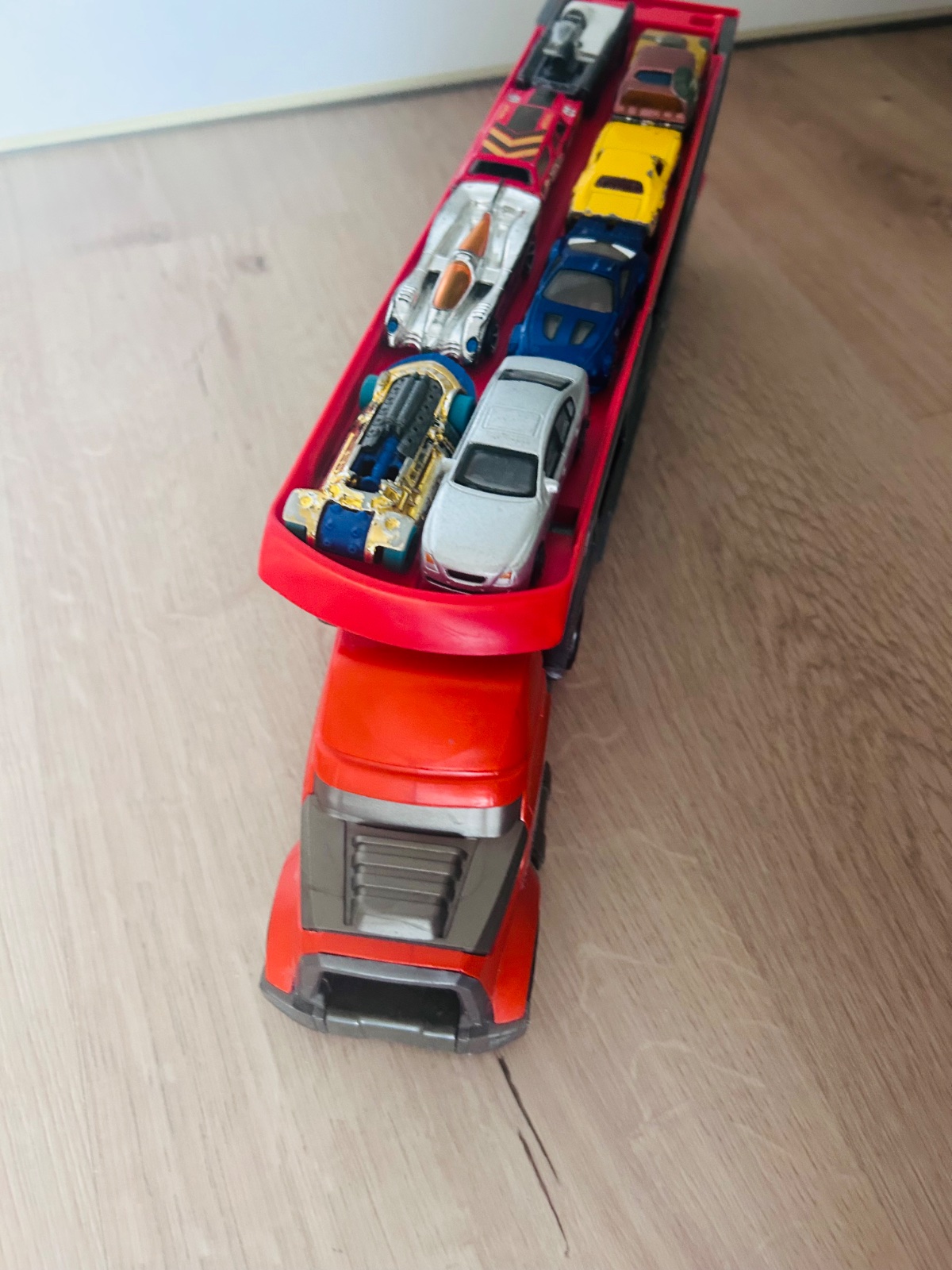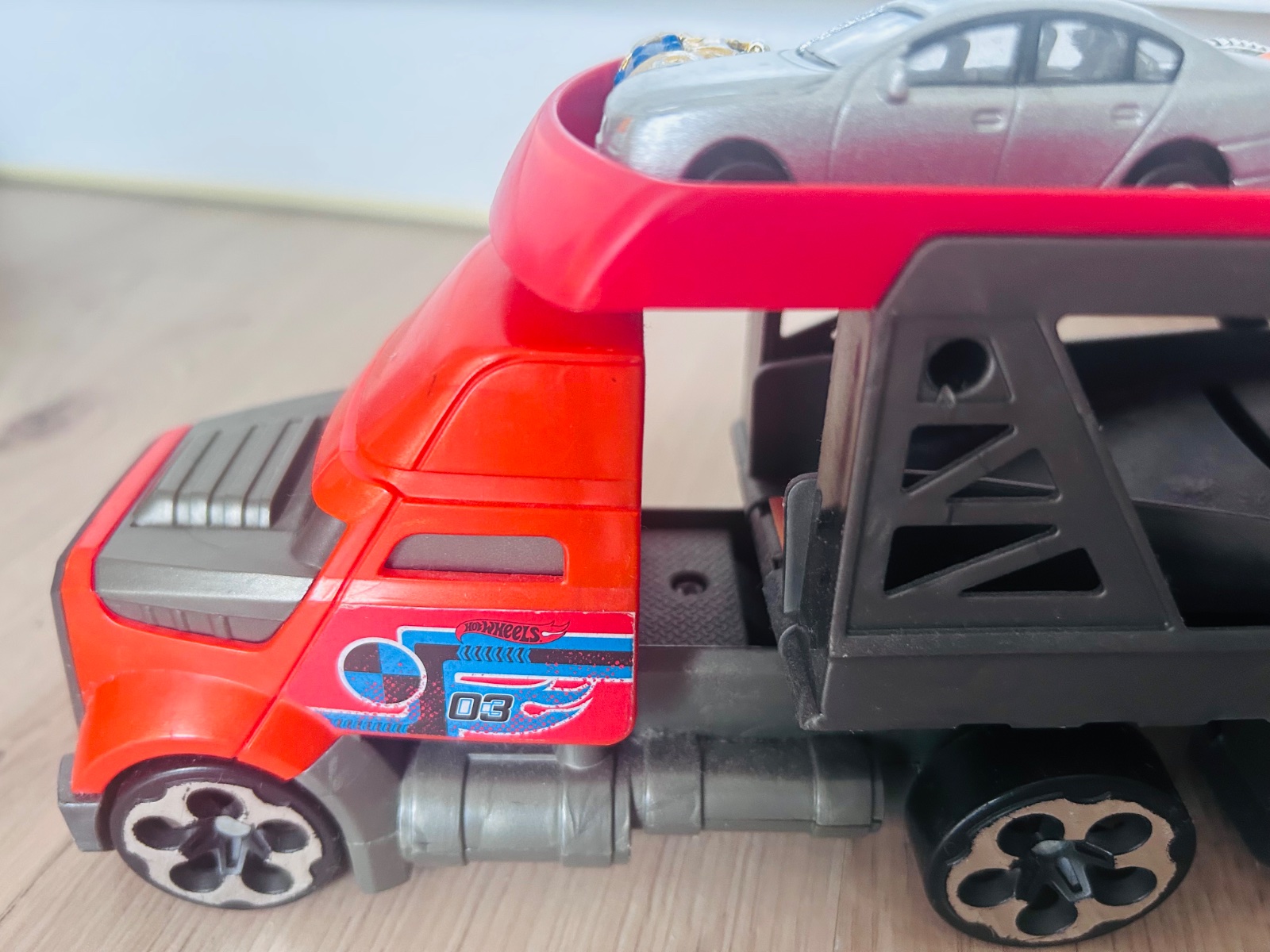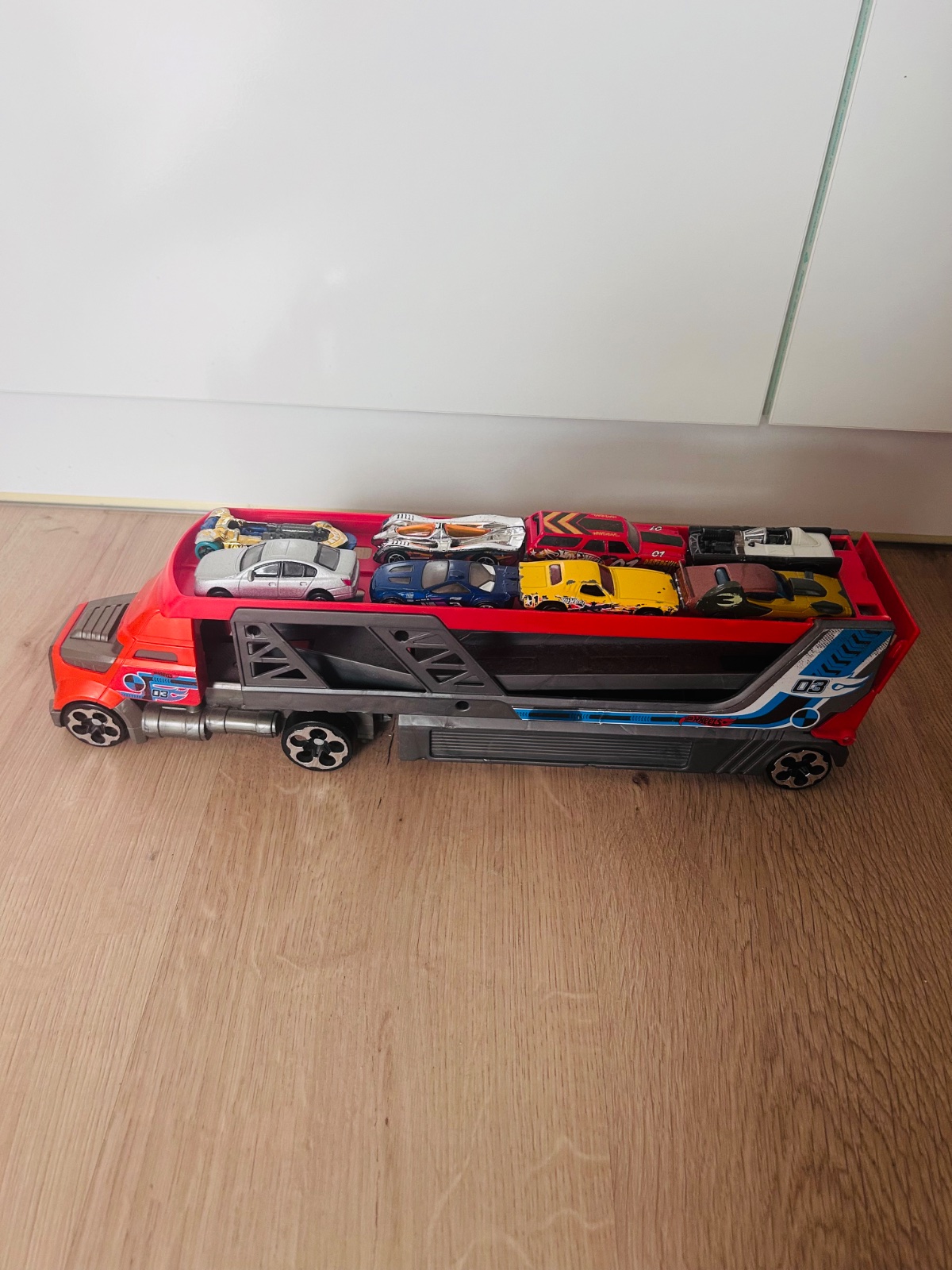 Nakladak Hotweels, daju sa nalozit auticka aj dovnutra aj hore na strechu, prefektnahracka, darujem k tomu 10 auticok hotweels. Dlzka nakladaku 40 cm.