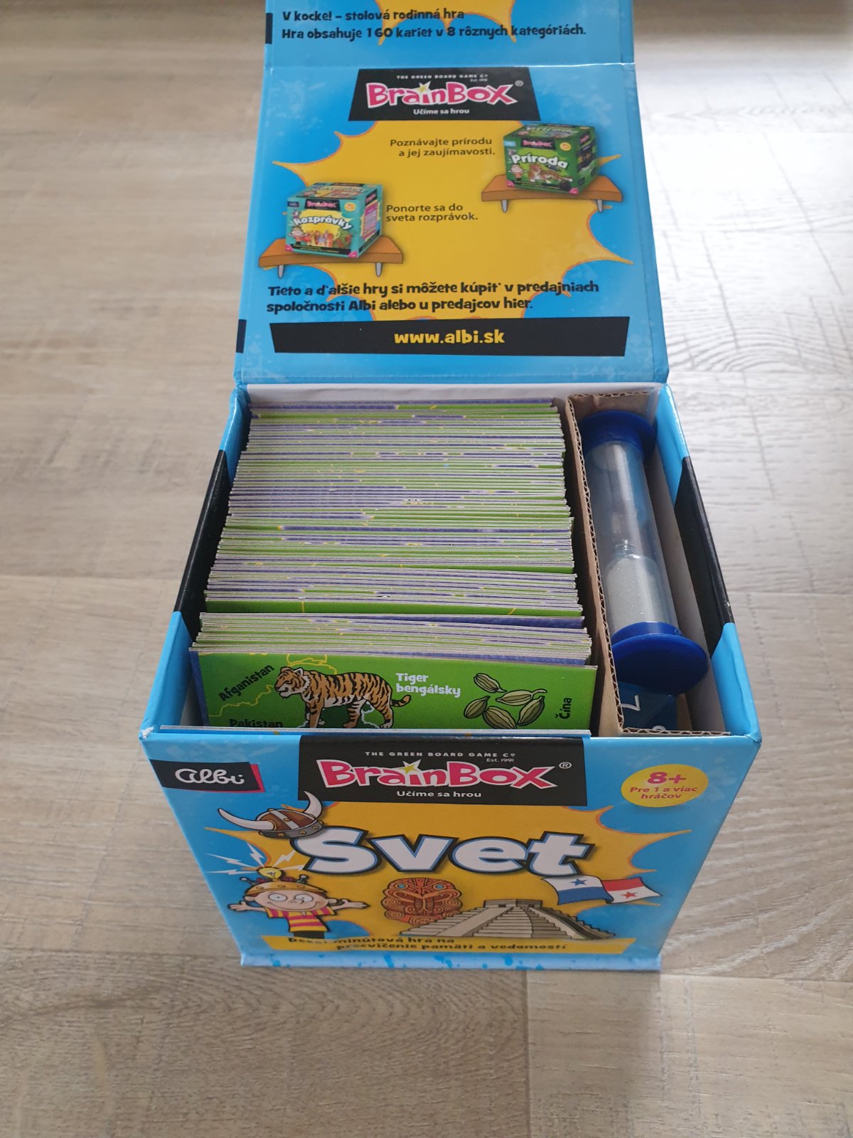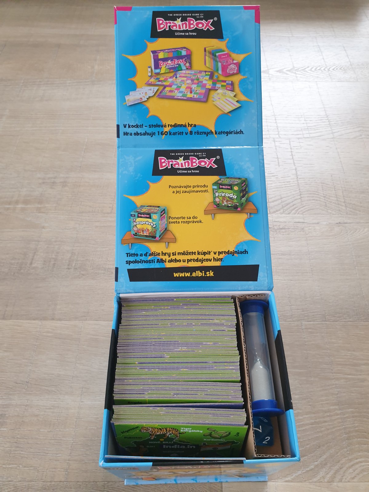 Obsahuje 71 kariet, navod, presypacie hodiny a kocku.