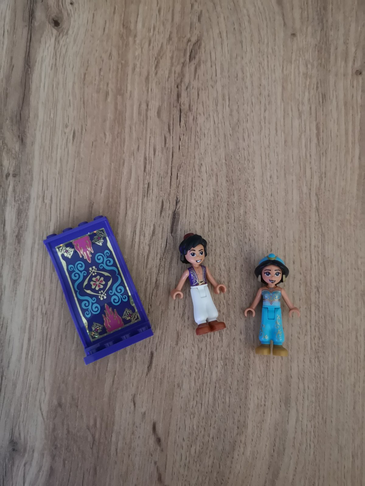 Lego Disney minifigúrky Jasmína a Aladin, plus ich lietajúci koberec. Bez poškodení.