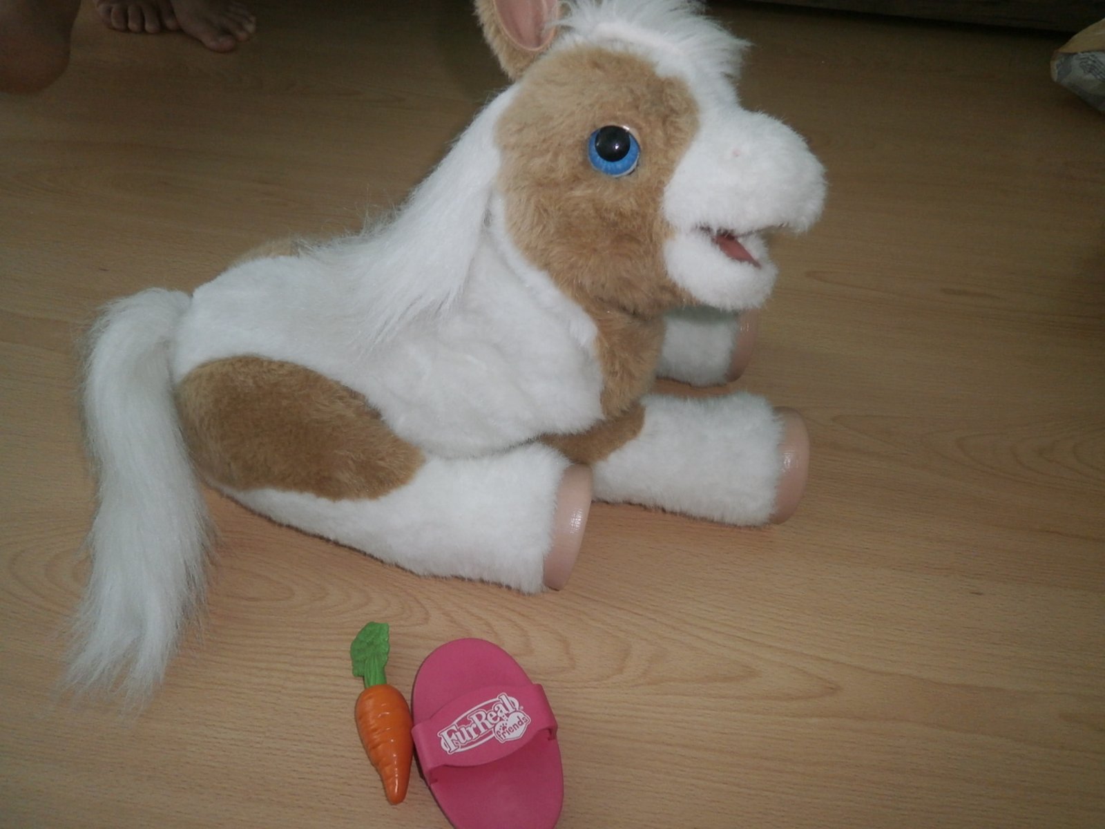 Veľmi pekný koník , žiaľ už nefungujú všetky funkcie , ktoré by mali. Keď ho však zatlačíte na chrbátiku , tak zaerdží , a zvykne ešte otáčať hlavičkou a ušami.