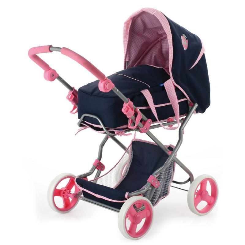 Krásny moderný kočík trojkombinácia s taškou vo farbe Navy pre bábiku. S polohovacou rukoväťou je skvelým darčekom pre vašu malú slečnu, ktorá sa vo všetkom chce podobať svojej maminke. Kočík je pre bábiky do veľkosti 43 cm.