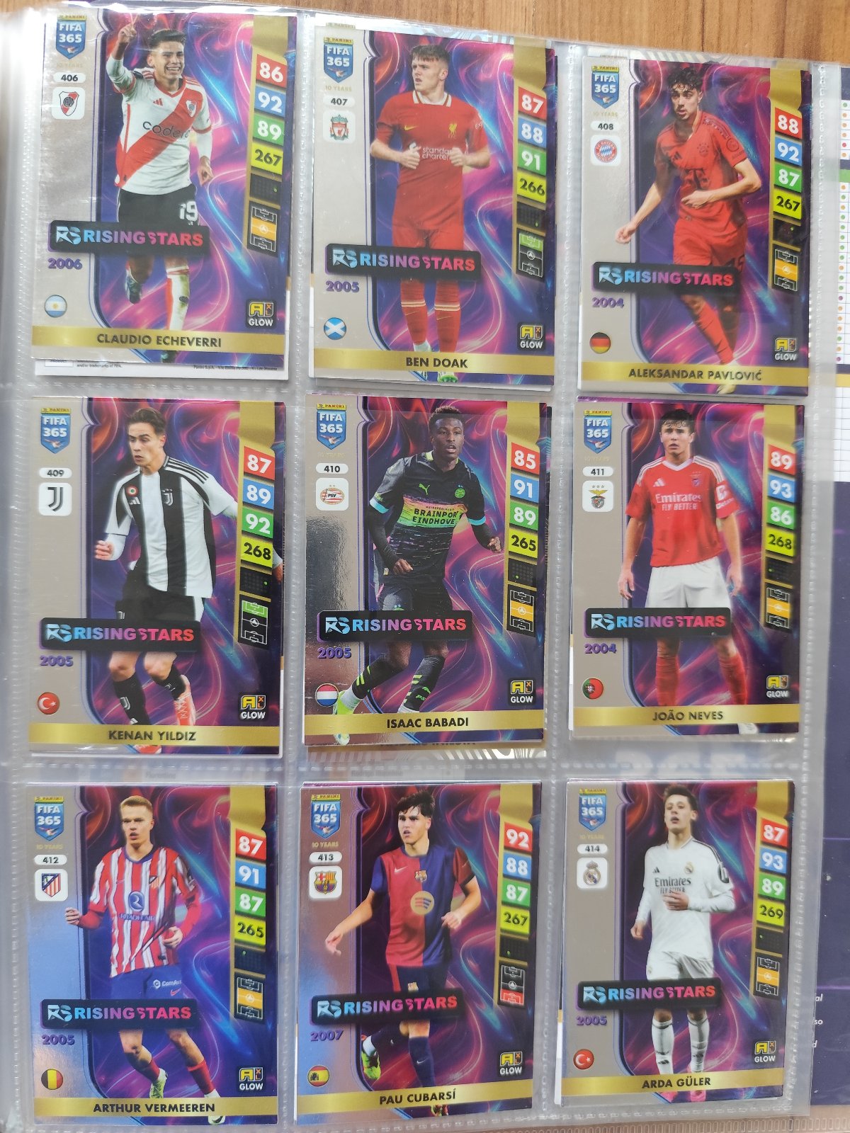 Predám najnovšiu sériu Fifa 365 2025 - kartičky Rising Stars (Vychádzajúce hviezdy). Nádherné kartičky.