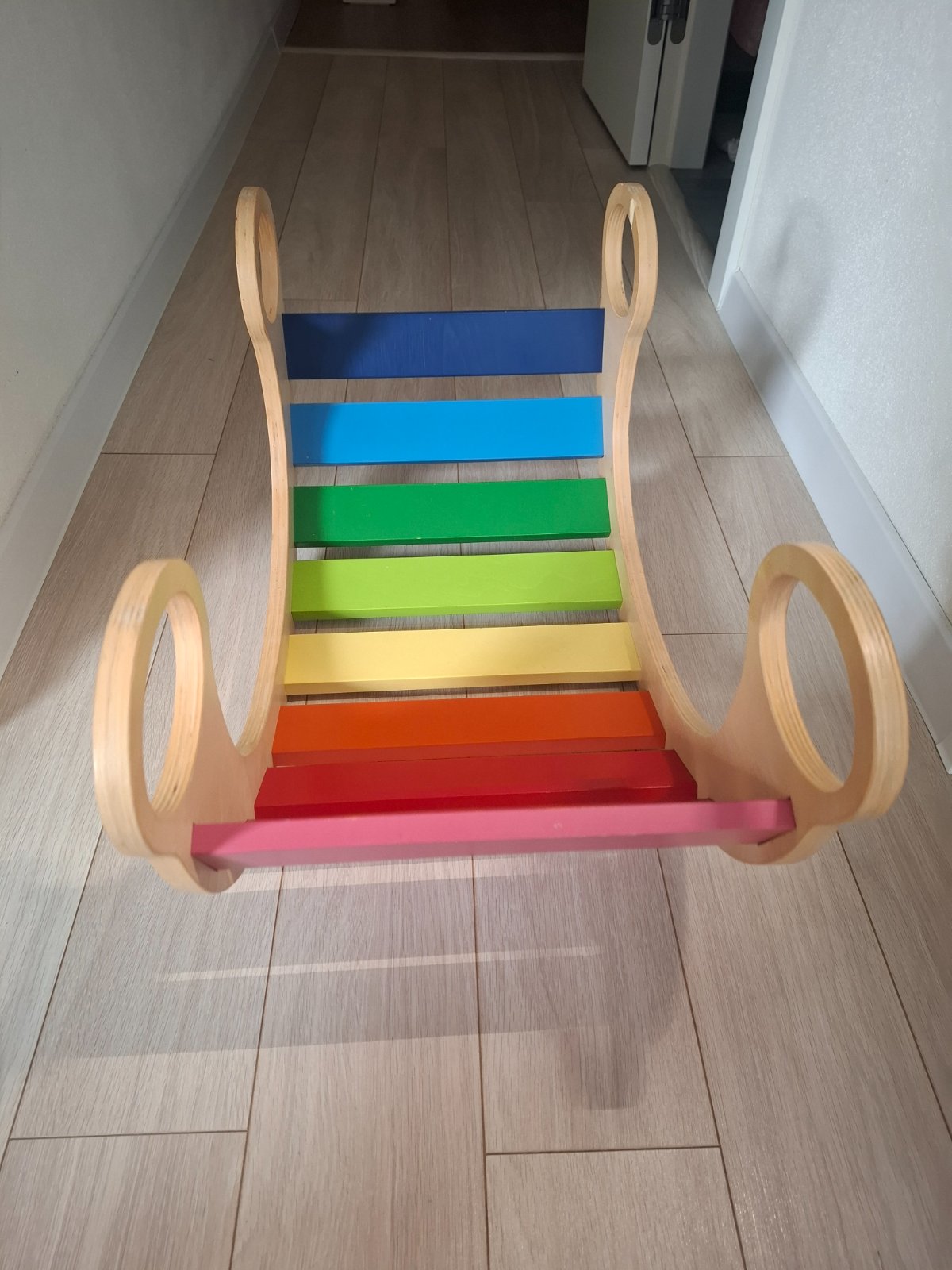 Drevený hojdací koník, používaný len v interiéri, samozrejme škrabancom na dreve (farbe) sme sa nevyhli ani my (viď.foto). Plne funkčný, zadné operadlo a bočnice pre malé deti je možné demontovať. ...