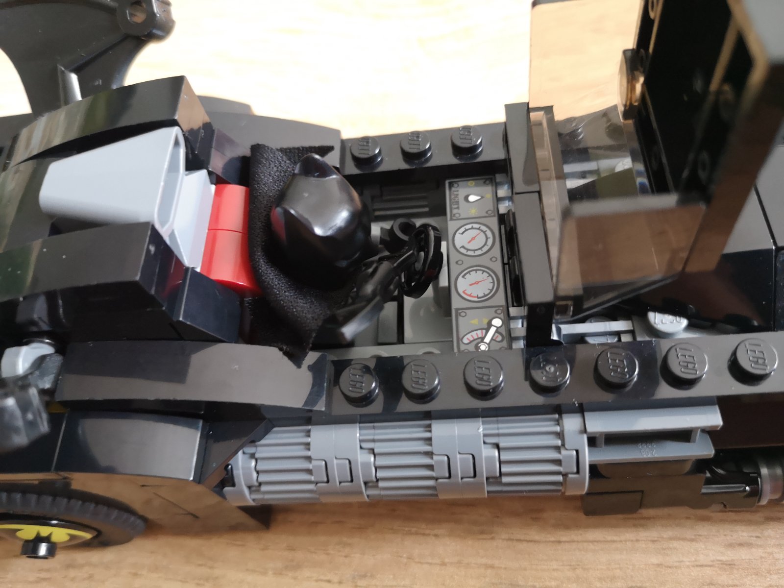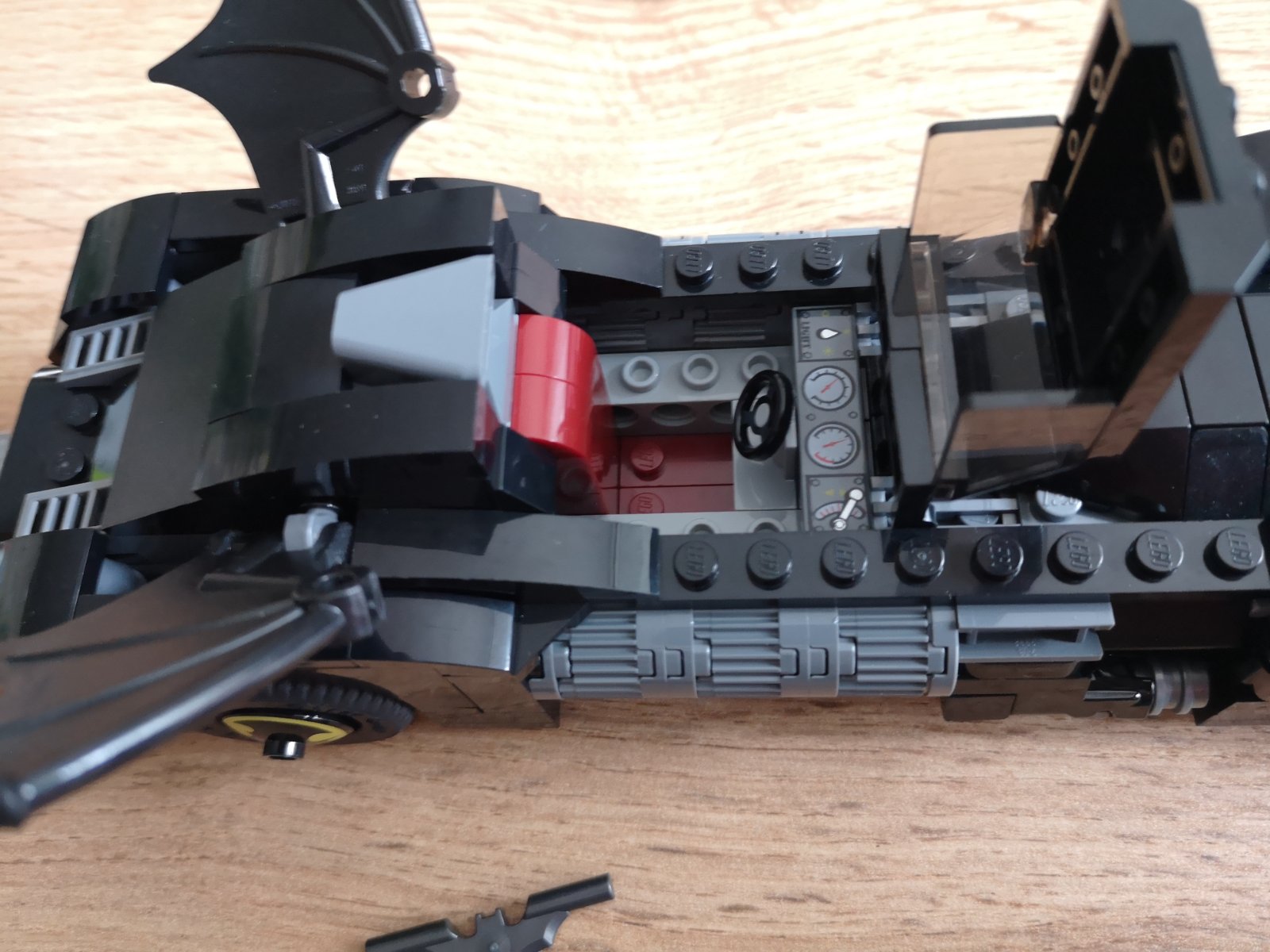 Batmobil má otvárací kokpit pre minifigúrky, palubnú dosku s množstvom detailov, dva skryté rozkladacie vystreľovače, funkciu točenia plameňa z výfuku, dve Batmanove krídla, s ktorými sa dá hýbať a ráfiky kolies s dekoráciou Batmanovho netopierieho symbolu.