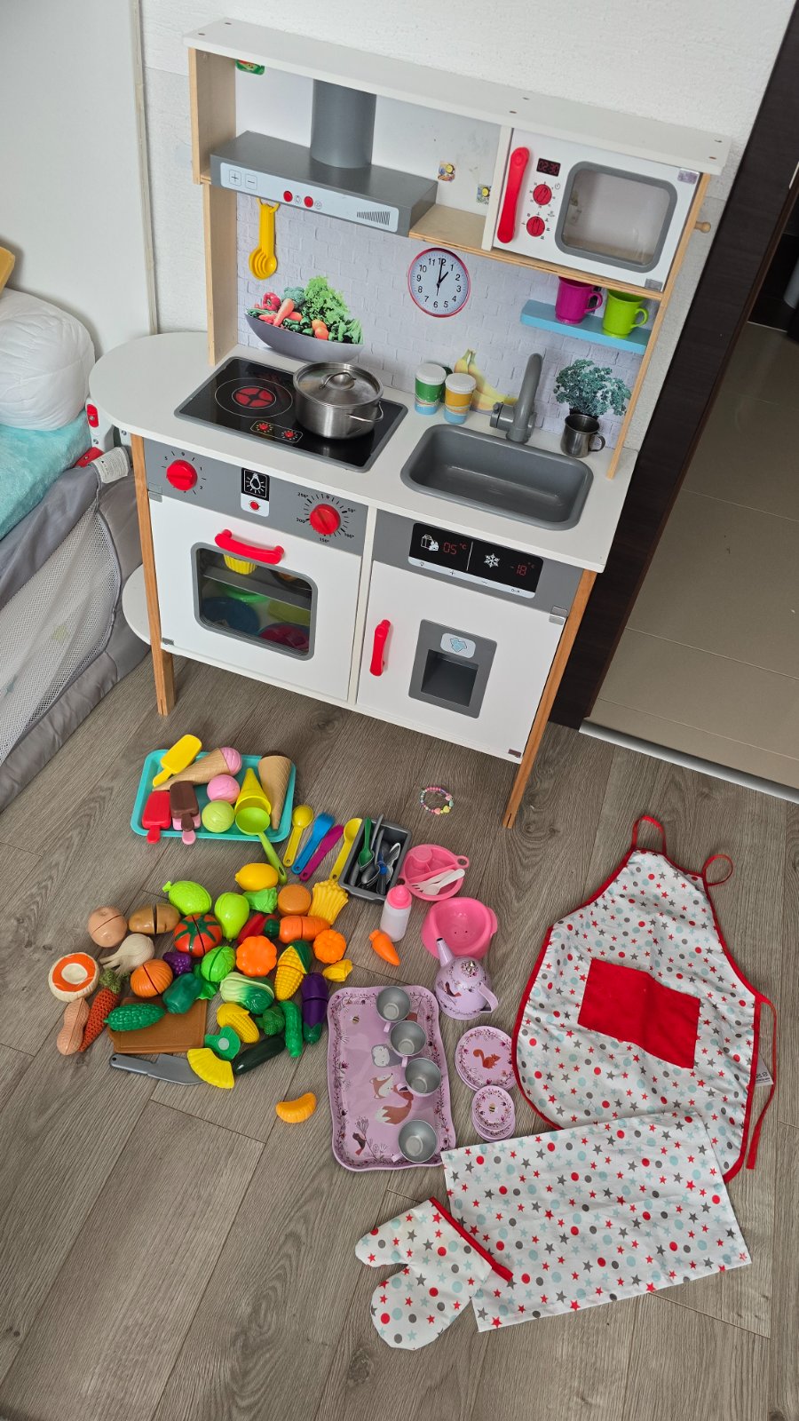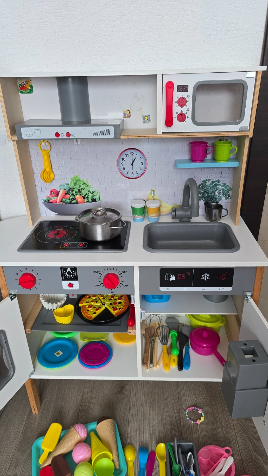 Detská kuchynka s bohatým príslušenstvom.