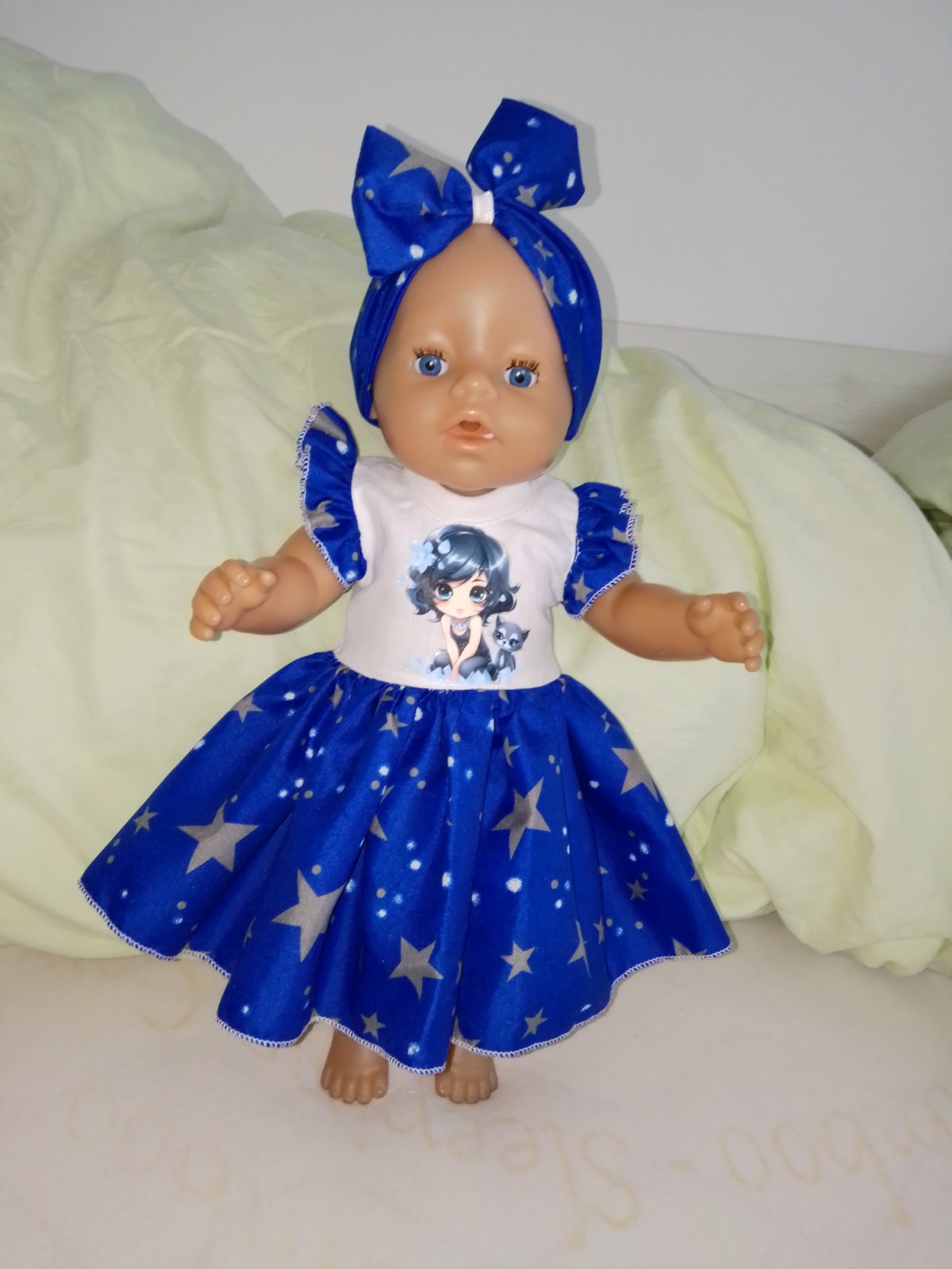 oblečenie je šité, nehrané. Vhodné pre bábiku baby born 43 cm a staršiu sestričku 43cm.