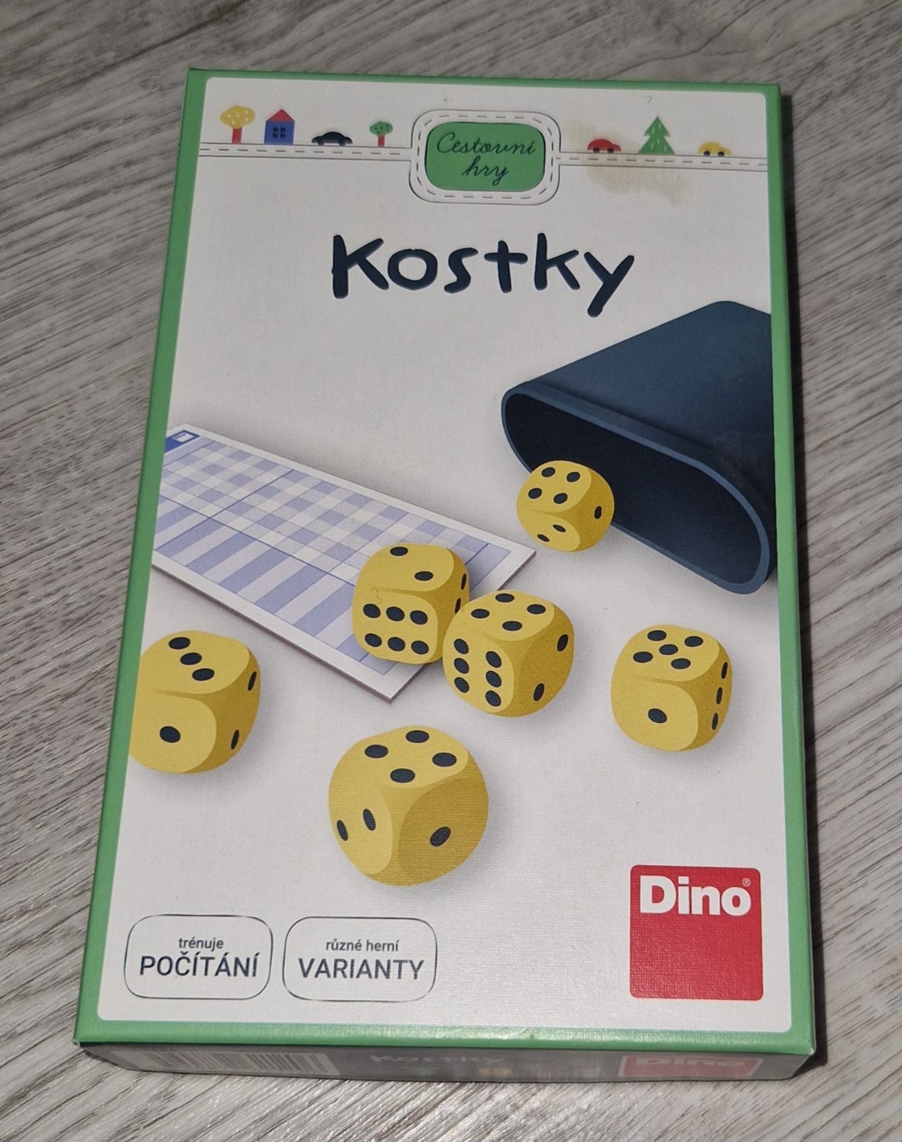 Obsah: 6 kostek, 1 kelímek, 1 sada záznamových tabulek, český návod ke hrám