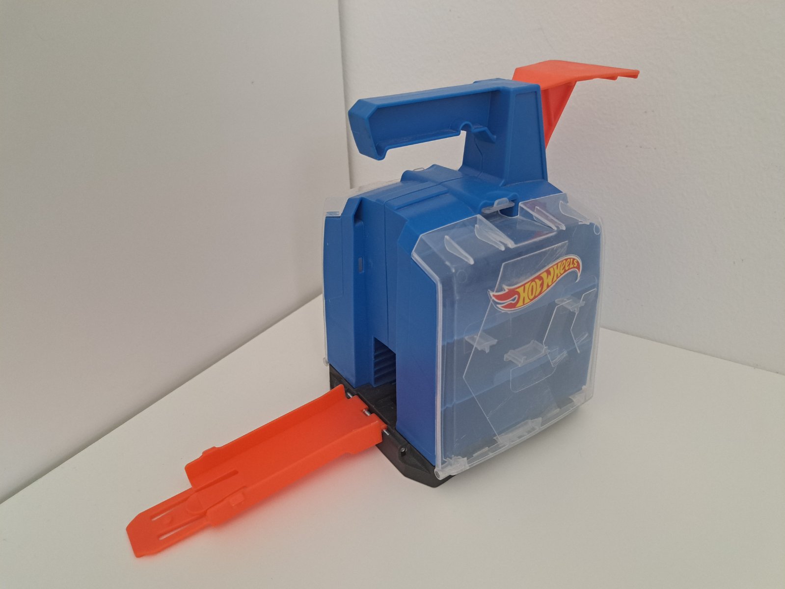 Predam vystrelovaciu drahu znacky Hot wheels so zasobnikom na 6 auticok. Draha je lahko prenosna pomocou madla a je kompatibilna s ostatnymi kusmi hot wheels.