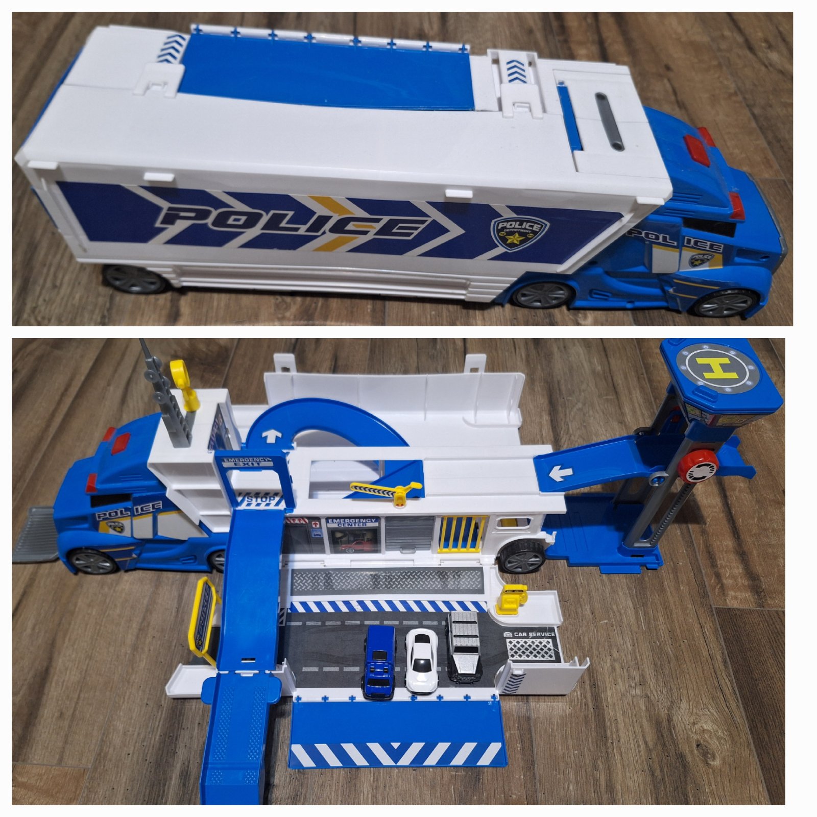 policajný kamión s autíčkami a príslušenstvom, zvuk policajnej sirény , cena 8 €, iba osobný odber Bardejov