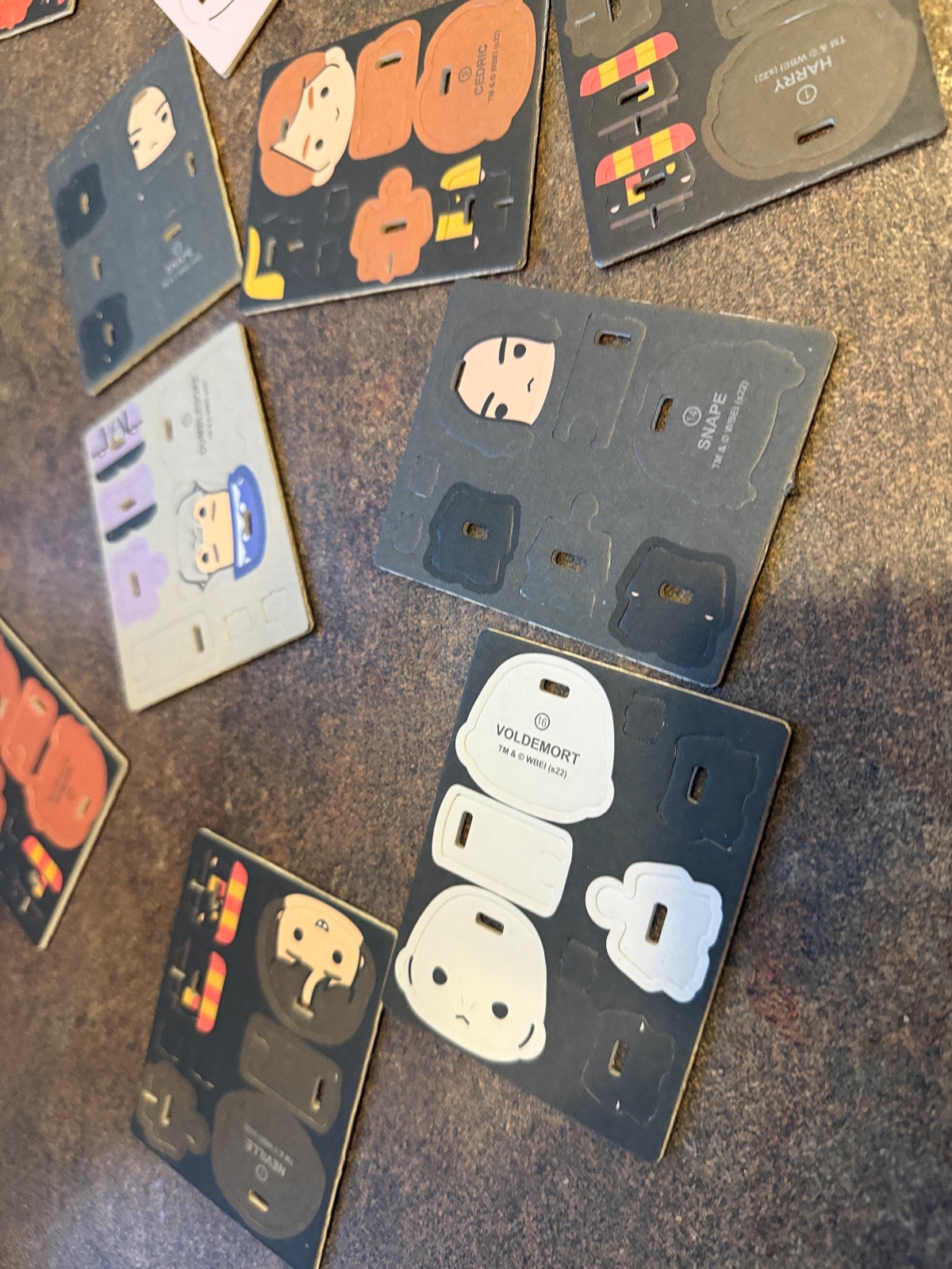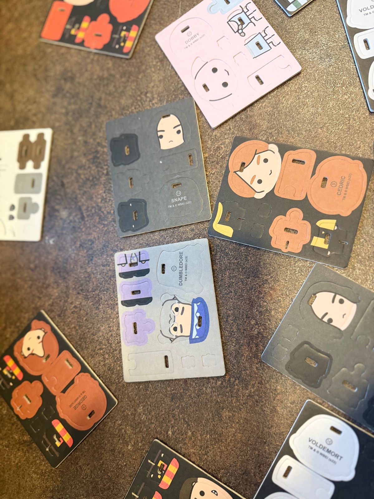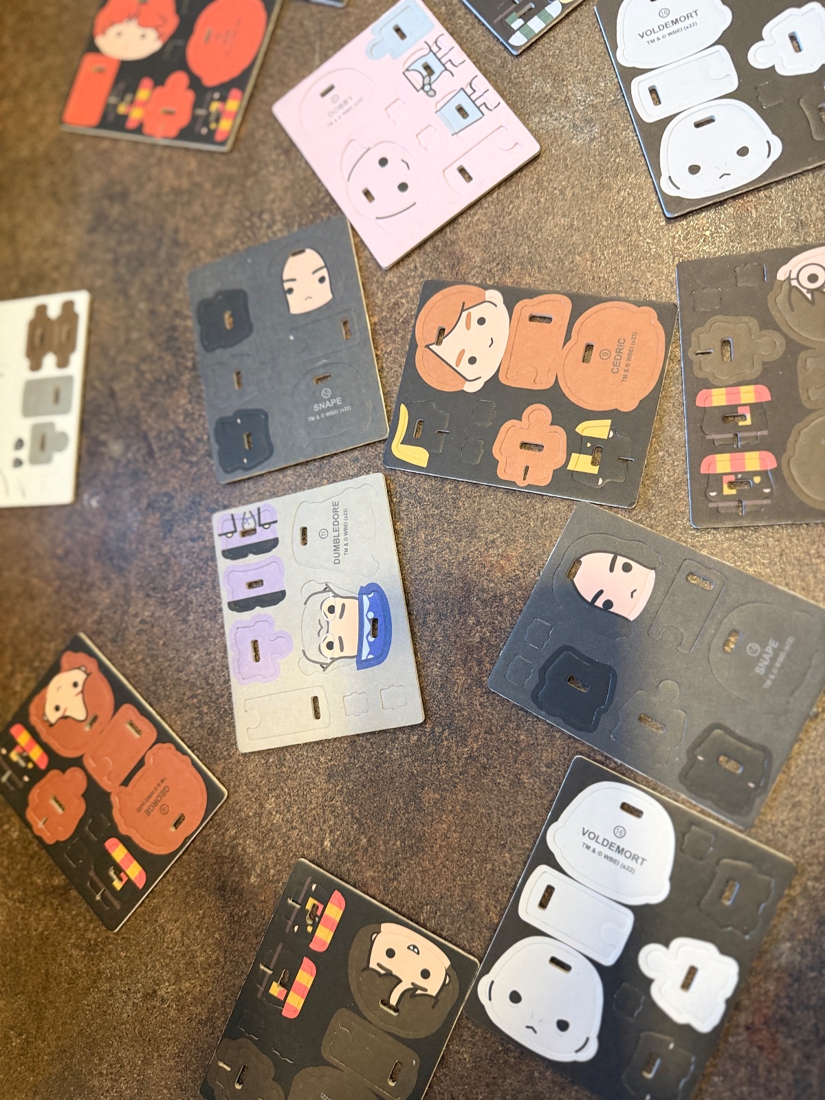 • rôzne postavy z filmu – harry, hermiona, ron, draco, dumbledore, voldemort a ďalšie