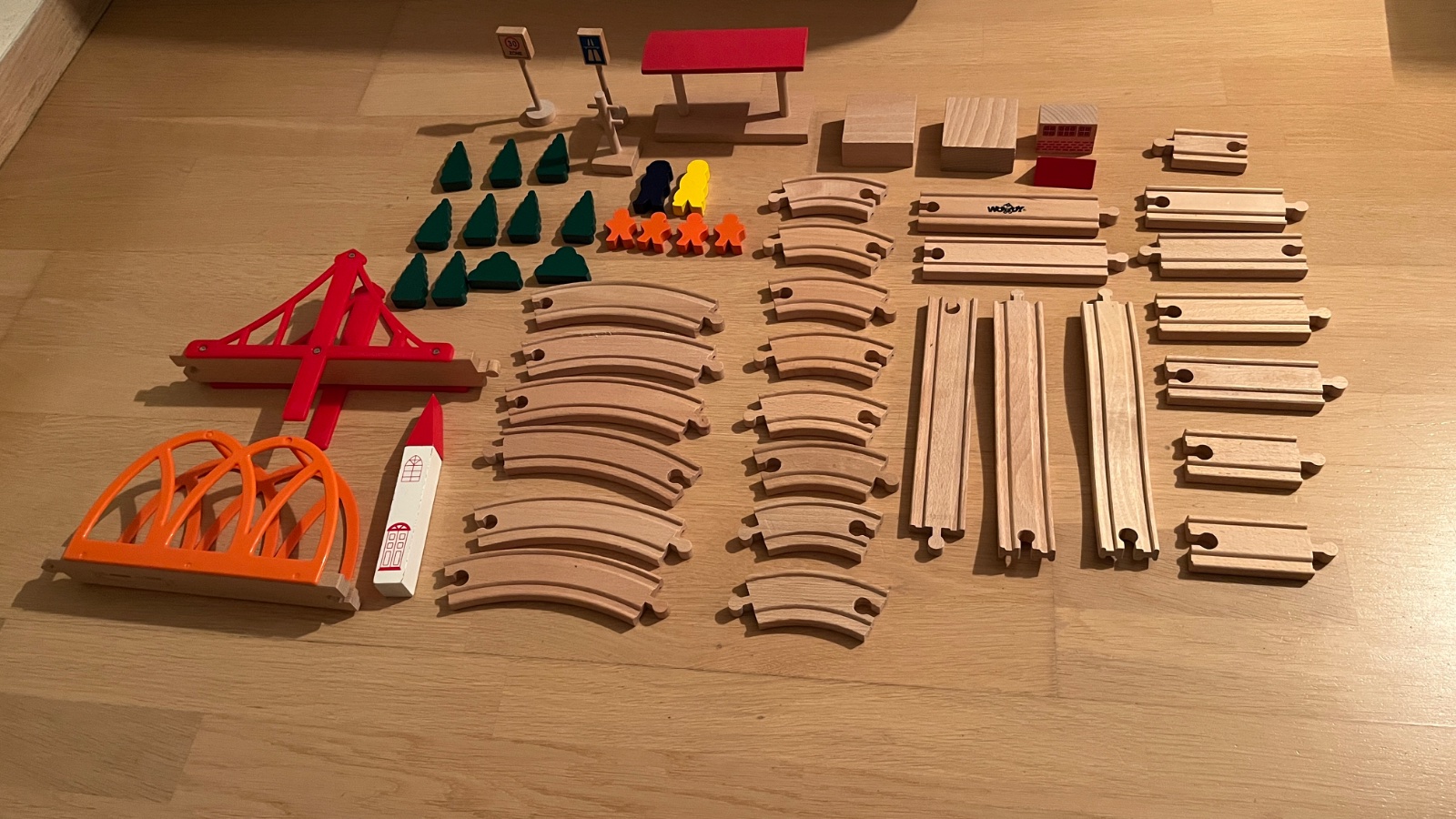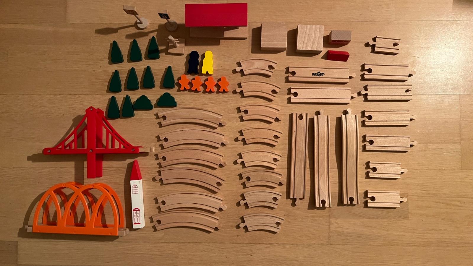 Kvalitná nepoškodená vláčiková dráha so štandardnými rozmermi koľajníc a množstvom príslušenstva.
