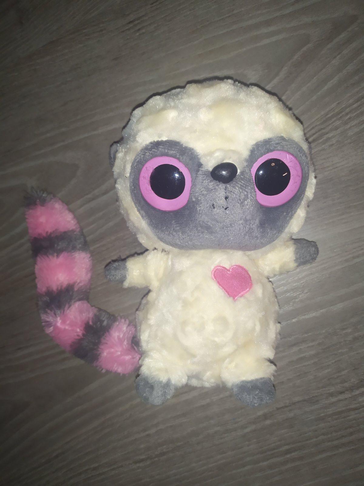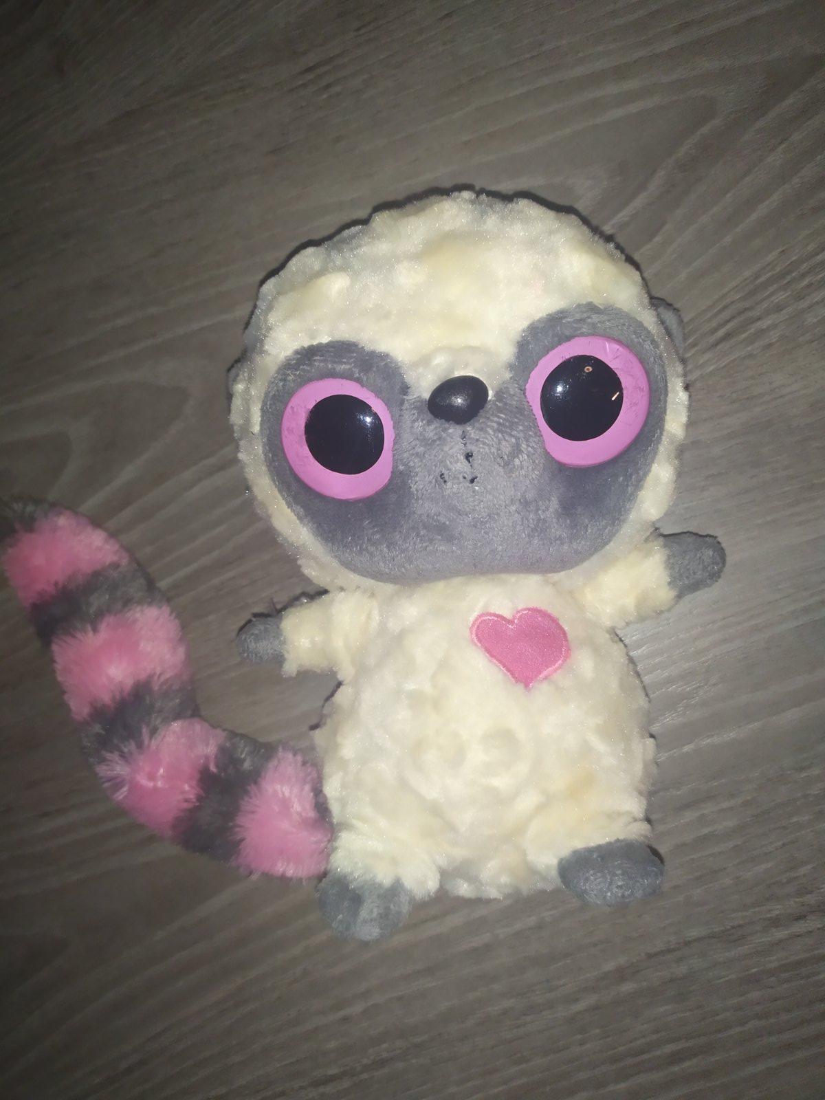 Plysovy macko asi myval s velkymi ocami, myslim, ze sa im hovori beanie boos hebky , po stlaceni vydava zvuk pusinky a zasvieti mu srdiecko velmi roztomile s chvostikom , teda akoby bozkavajuca hracka, velmi mile aj na spanie myslim, ze sa volaju yoohoo