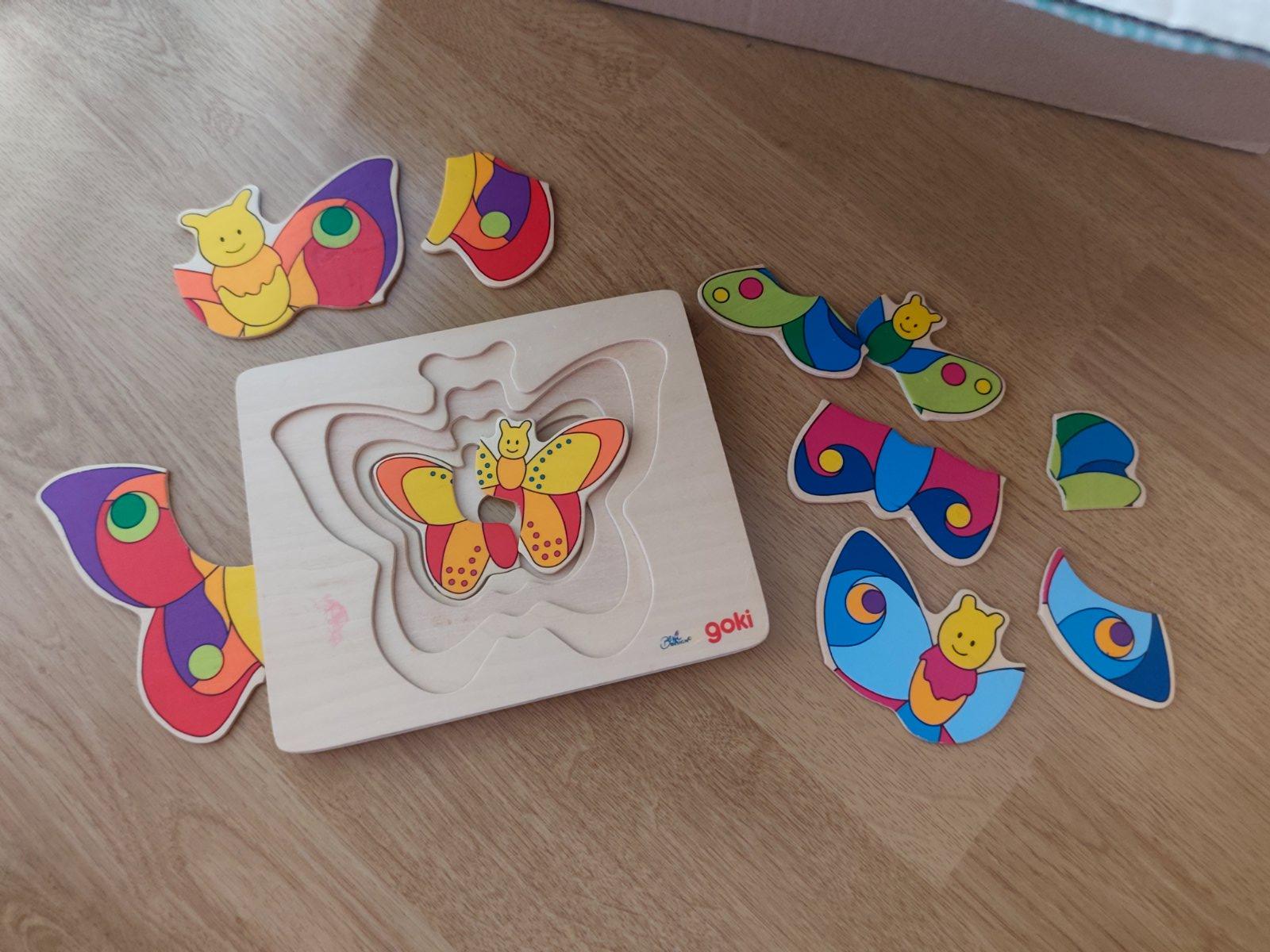 Ako puzzle a zároveň vkladanie , 4 motýle rôznej veľkosti pod sebou