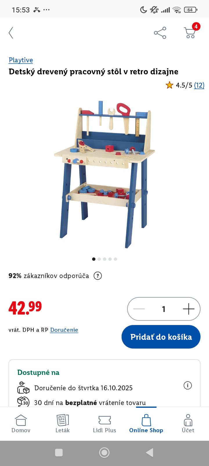 Úplne nové, nevybalené z krabice, vhodné ako darček na blížiace sa Vianoce napríklad. My sme to dostali na minulé Vianoce a keďže je to pre nás nevhodný darček, ostala celá škatuľa tak ako prišla zabudnutá v skrini, ani sme ju neotvorili. Samozrejme tovar môžem v prípade záujmu skontrolovat, nafotit. Tovar je stále vyše roka ešte v záruke. Stôl s náradím podporuje rozvoj motoriky a zručnosti.