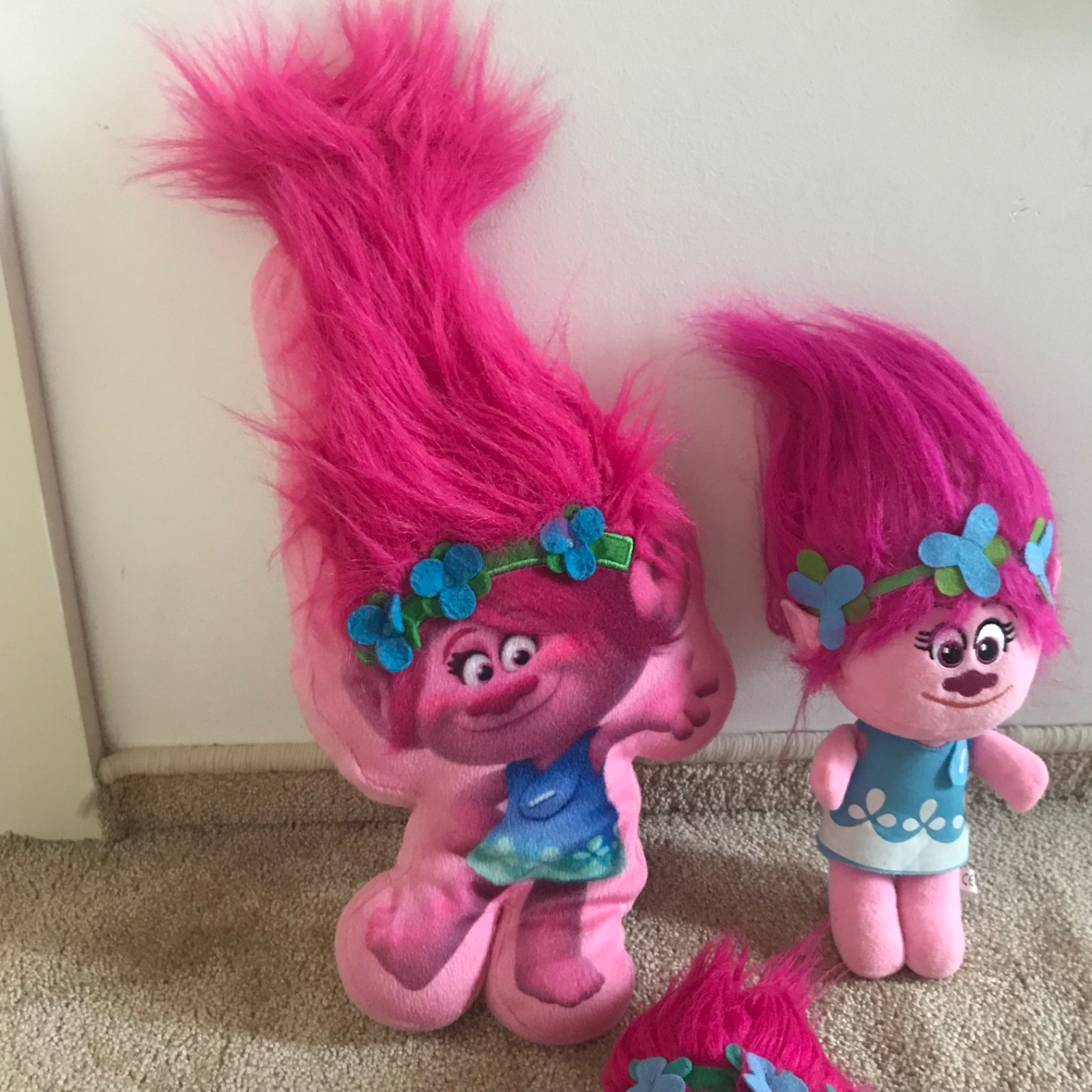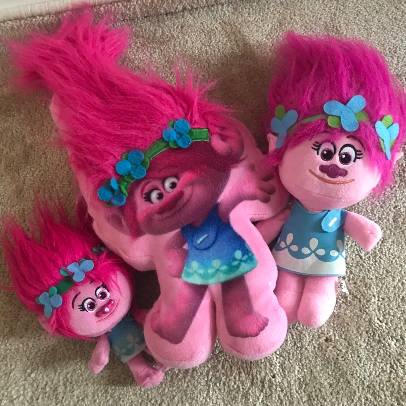 1 x vankúšik a 2x plyšová hračk Poppy z rozprávky Trolovia
