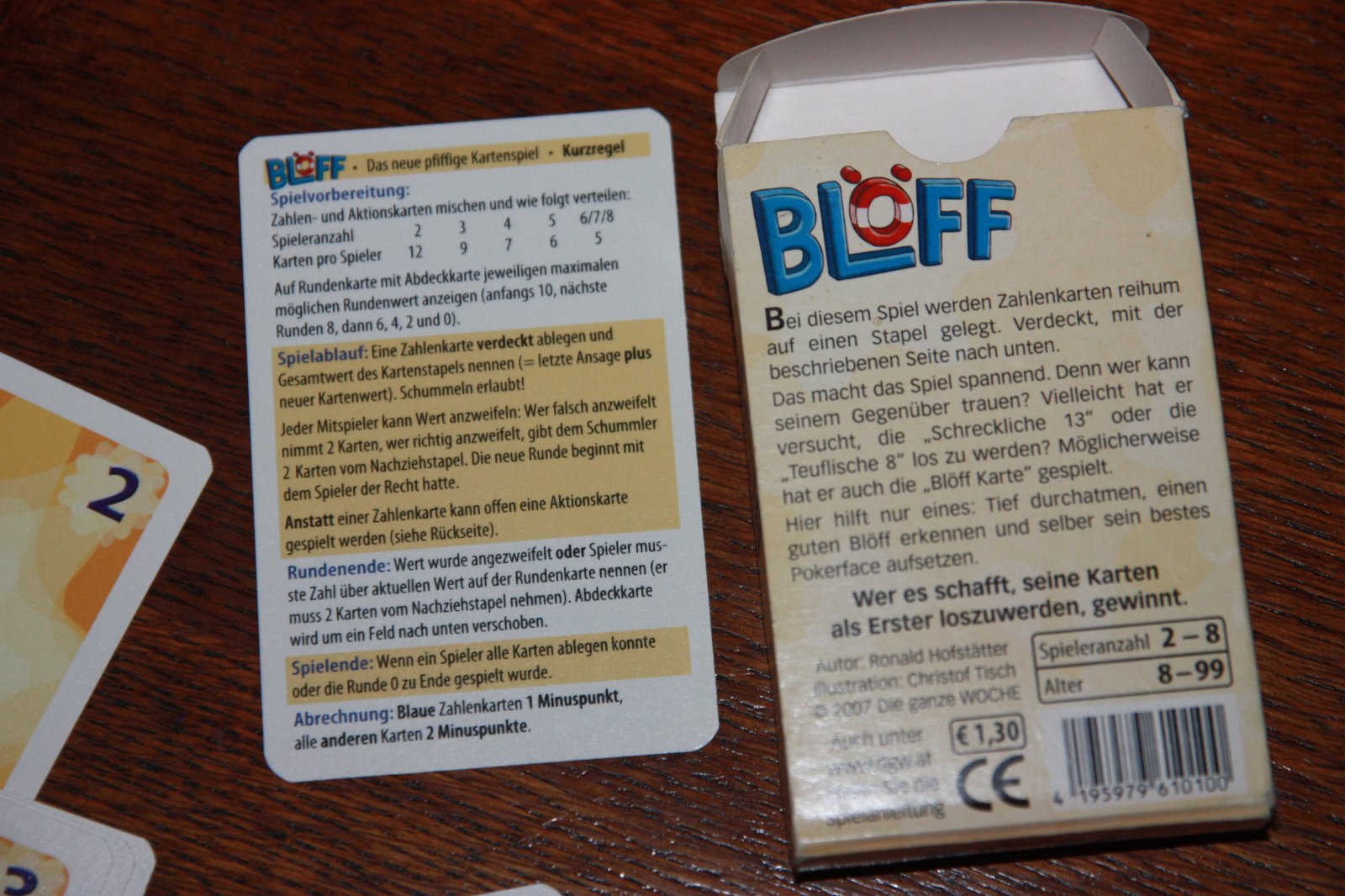 Kartová blufovacia hra pre hráčov od 8 rokov. Pravidlá v nemčine. Super stav.