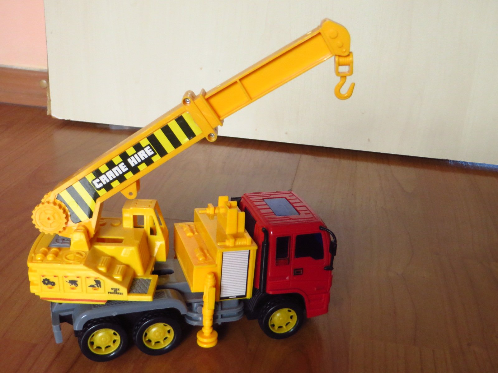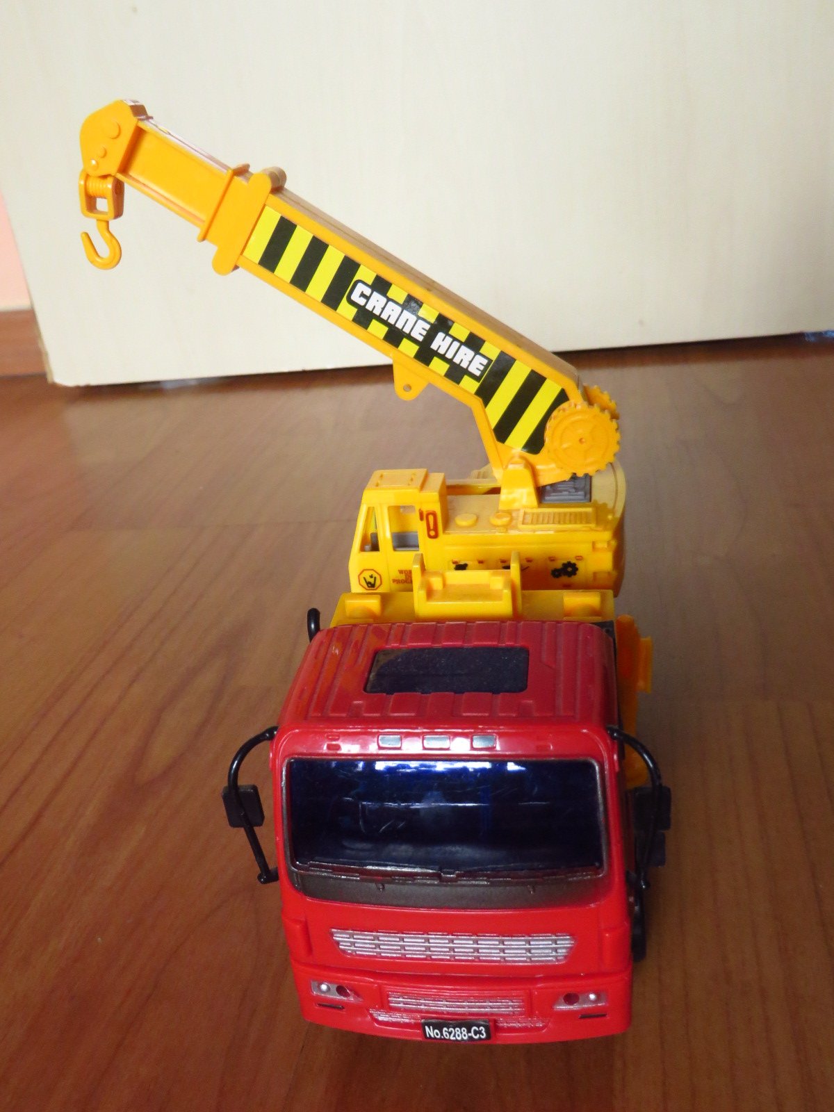 Predám plastové auto so žeriavom, dĺžku má 18 cm. Je hrané, ale plne funkčné a nepoškodené. Žeriav sa otáča a vysúva, vtedy je ešte dlhšie.
