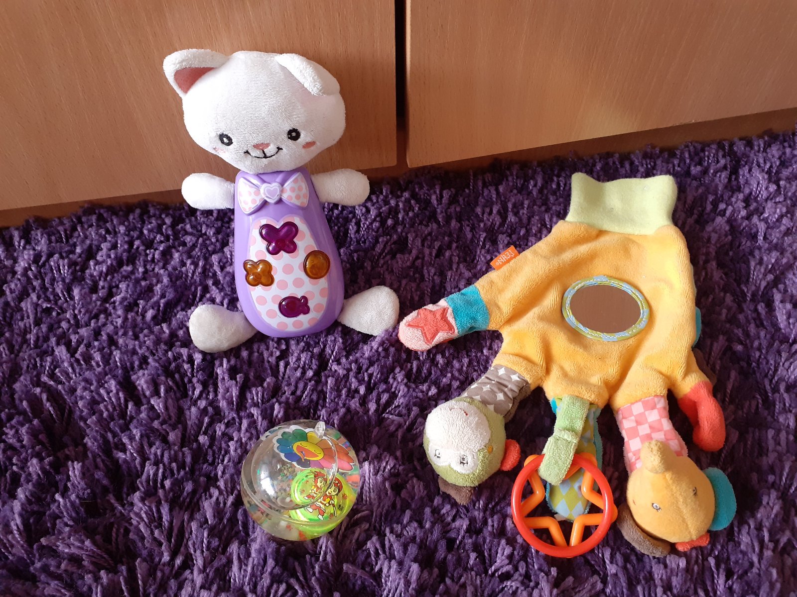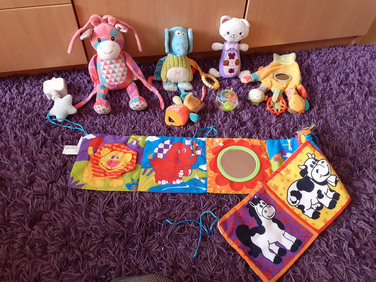 balík rôznych hračiek pre najmenších, ktoré majú rôzny povrch, farby, materiál, zvuky