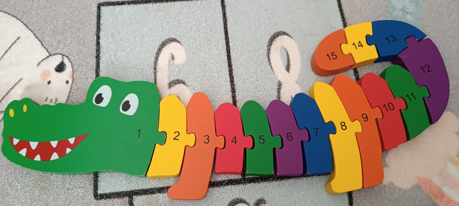 Prvé hračky, farebná skladačka krokodíl.