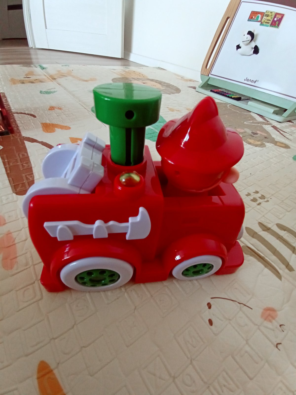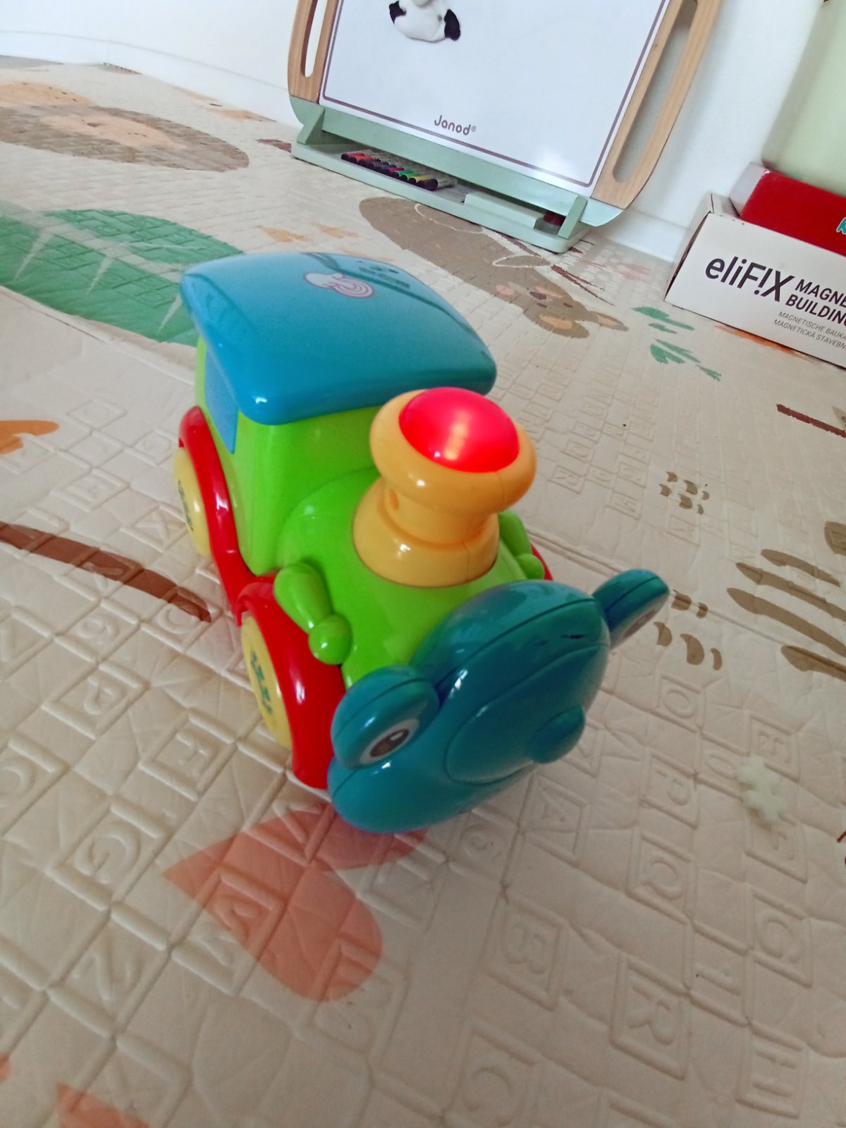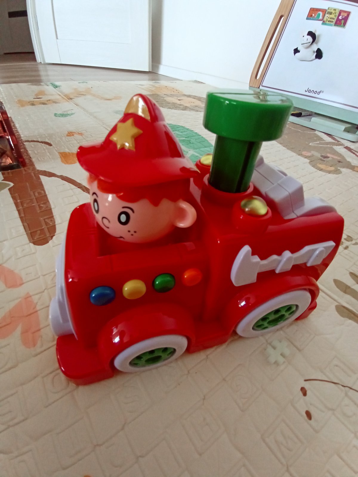 Všetky plne funkčné. Hasičské auto s rôznymi zvukmi a melódiami, plus naťahovacie. Vláčik tiež vydáva zvuky pri pohybe, dotyku. Autíčko s kockou - tvár v kocke sa pri pohybe autíčka točí.