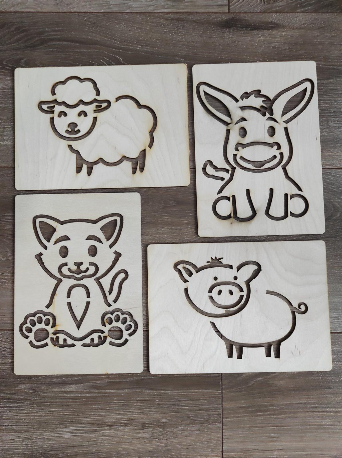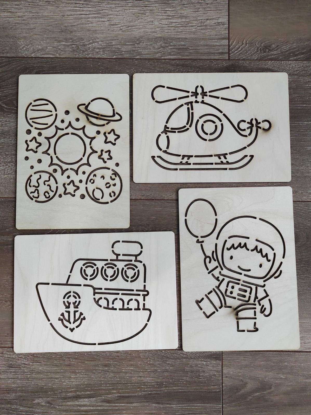 drevene sablony na kreslenie pre deti. vhodne od 2 rokov. cena za 1 sablonku 1 eur.
