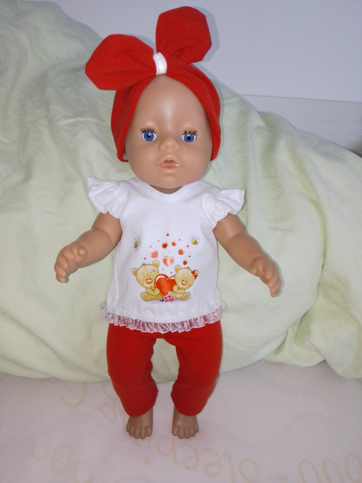 oblečenie je šité, nehrané. Vhodné pre bábiku baby born 43 cm a staršiu sestričku 43cm.