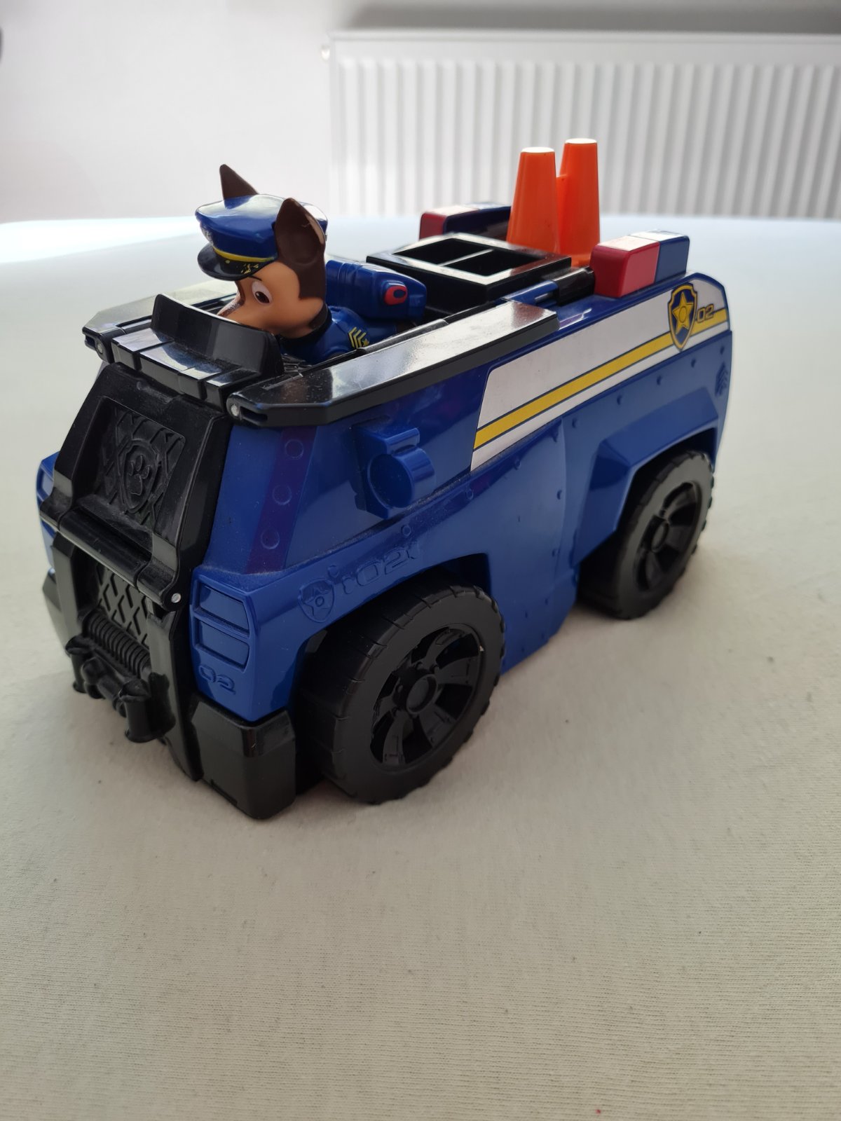 Auto sa dá otvoriť a vytvorí plochu na hranie. Súčasťou je zajac, mačka a zelené strely. Psík Chase sa vie zohnúť. Auto je vo veľmi dobrom stave.